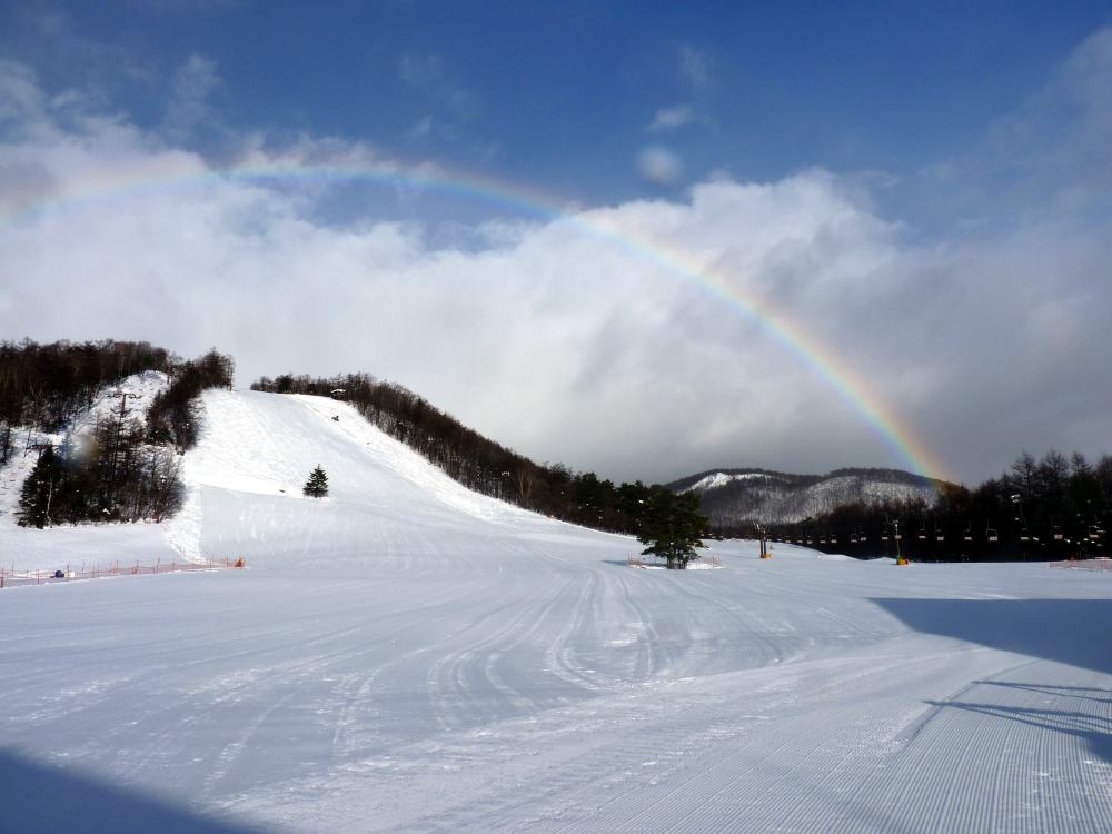 なんと!冬のスキー場に虹が出ておりました。