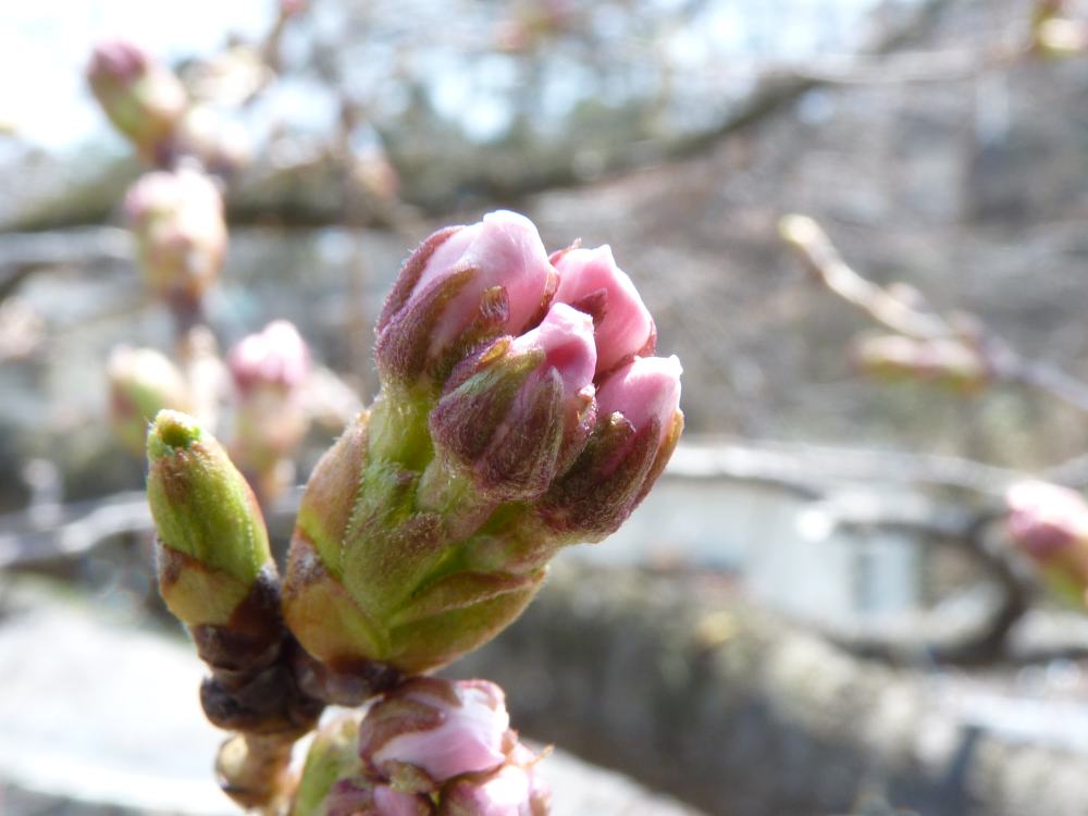 草津温泉では、やっと桜の木の蕾が膨らんで来ました。