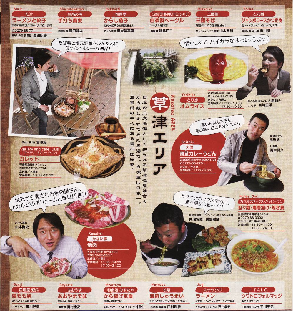 GUU認定!群馬の宿 若旦那が通うグルメガイド By 草津スカイランドホテルIn グルメPosted 2010年7月12日0 Comment(s) 「GUU認定」とは「ぐんま!ぅんまい!ぅんまい!」認定の略です。群馬県の宿を経営する若旦那が通う、美味しいお店を紹介するガイドが出来ました。 草津温泉の紹介は、こちらをクリックしてご覧ください。 草津温泉には、たくさんのお店があって迷ってしまいますが、是非、参考になさってください。 ポチッと、押して応援をお願いすますm(_ _)m ↓↓↓ ↓↓↓ 草津スカイランドホテル・栖風亭(せいふうてい)