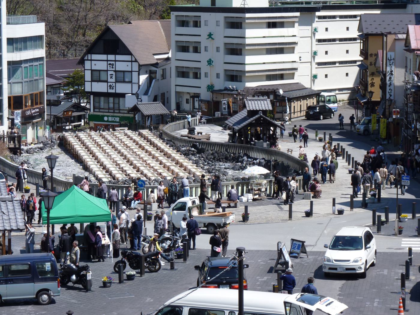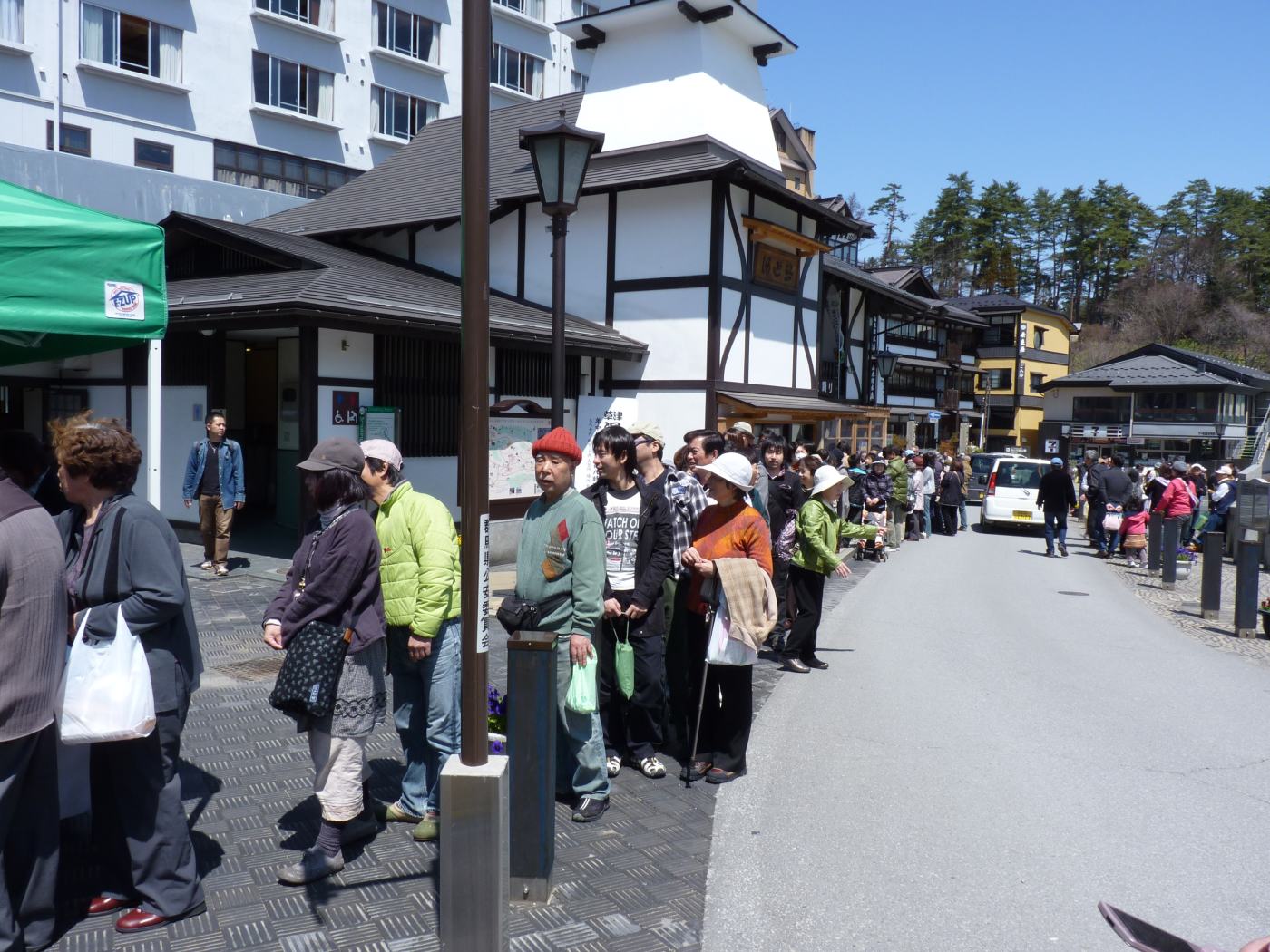 久しぶりに、湯畑周辺に長い行列が出来ました。