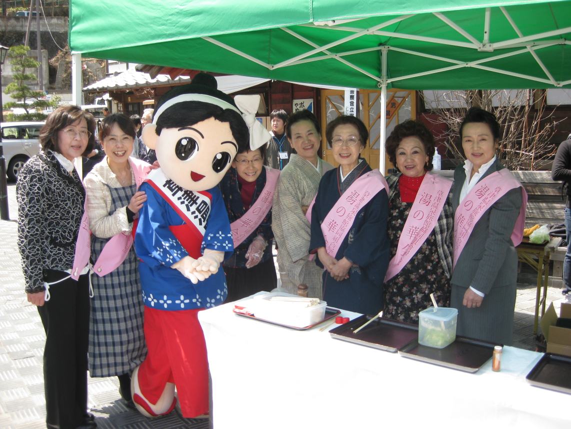 草津温泉の女将会 「湯の華会」とゆもみちゃんの記念写真です。