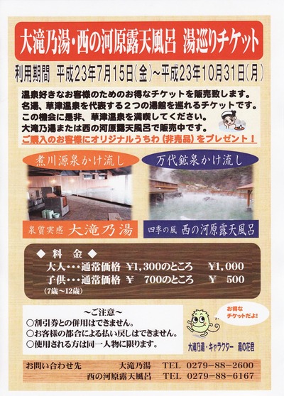 大滝の湯800円+西の河原露天風呂500円=1,300円が、