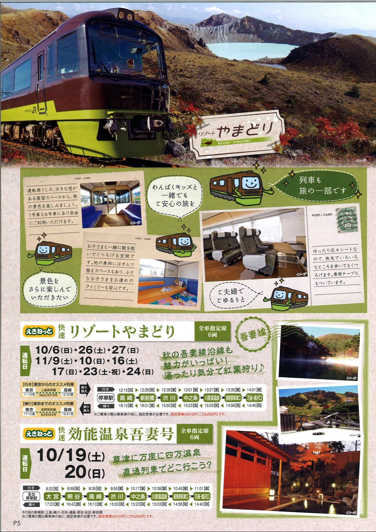 高崎から、のんびりと、「リゾートやまどり」でお越しください。