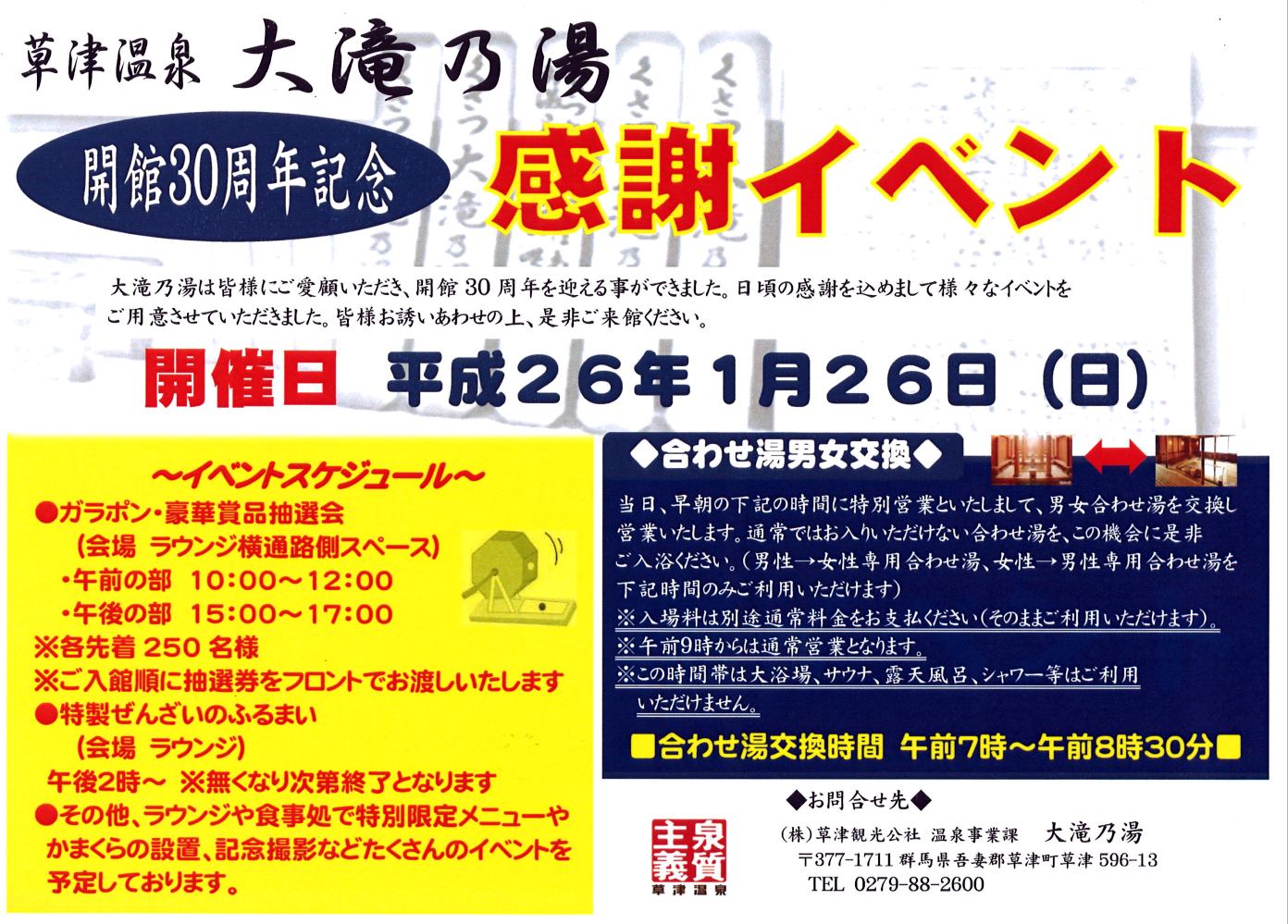 大滝の湯の30周年イベント素晴らしいですね。行きたいのですが。行けません。