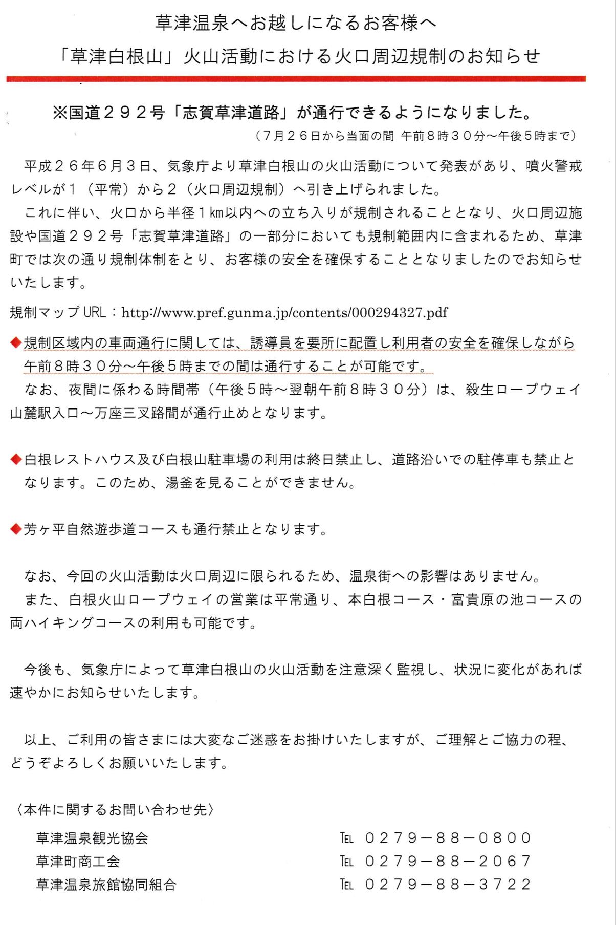 7/24から通行止めとなっておりました国道292号「志賀草津道路」が、
