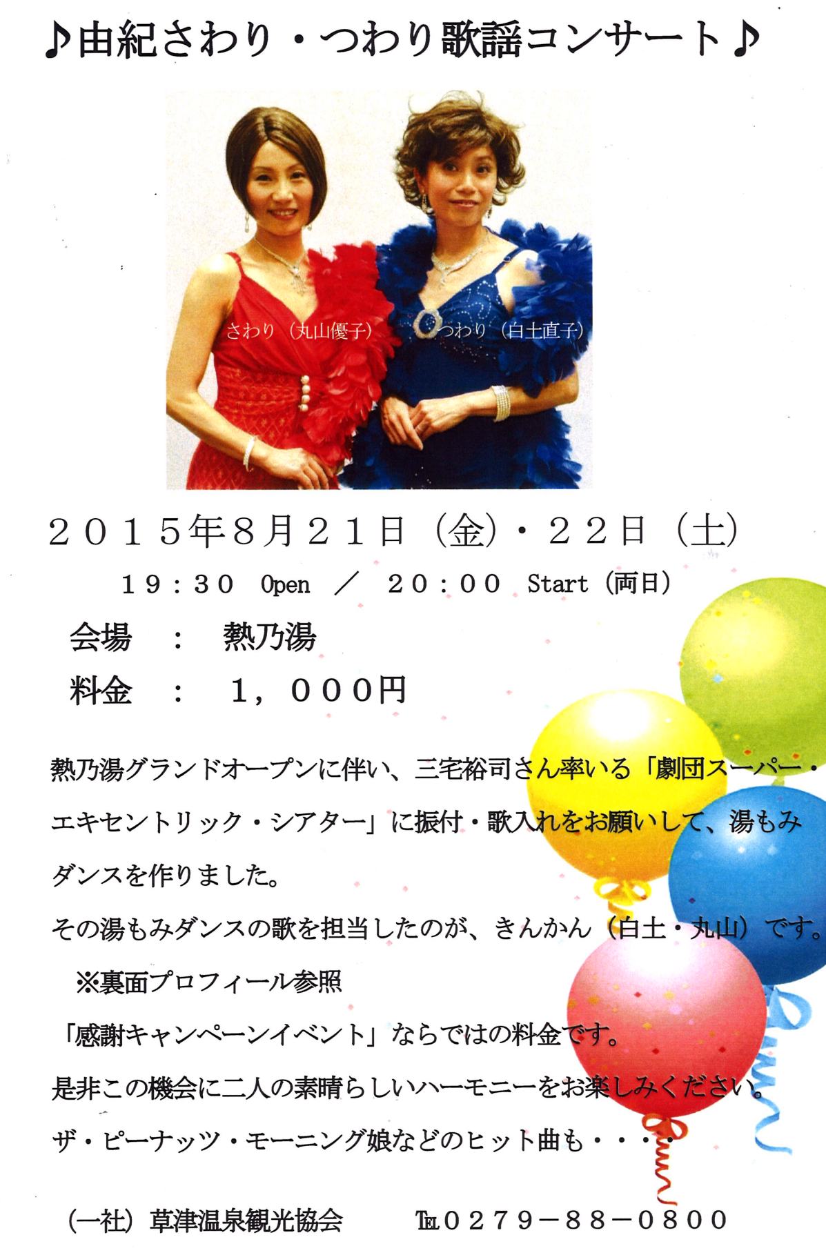 熱乃湯で “由紀さわり・つわり” の歌謡コンサートが行わます。