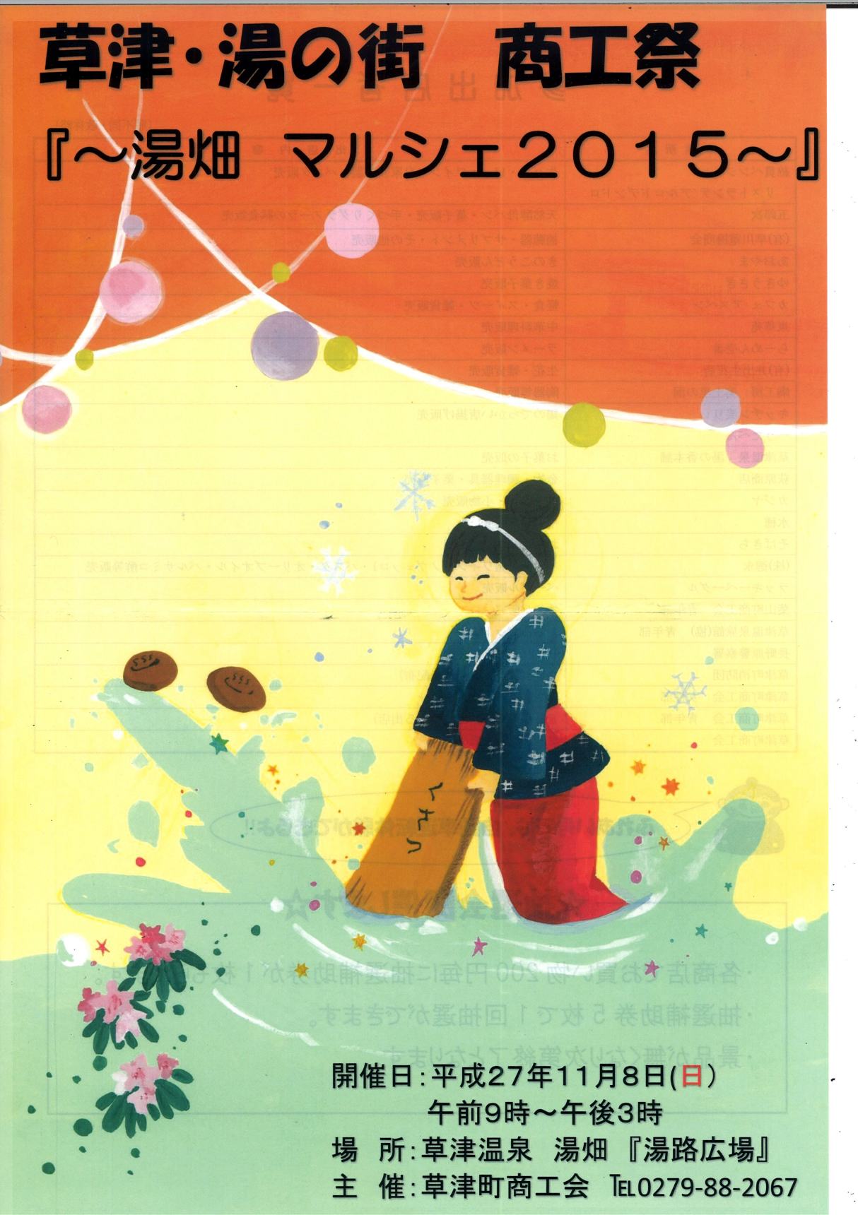 湯畑マルシェ2015 By 草津スカイランドホテルIn イベント情報Posted 2015年11月3日0 Comment(s) 草津温泉で毎年行われております、商工祭ですが、昨年より湯畑湯治広場で行われる様になりました。 こちら、昨年の様子です。 11月8日(日)9時~15時に行われます。今度の土曜日にお泊りのお客様は、是非、お出かけくださいませ。 ポチッと、押して応援をお願いすますm(_ _)m ↓↓↓ ↓↓↓ 草津スカイランドホテル・栖風亭(せいふうてい)