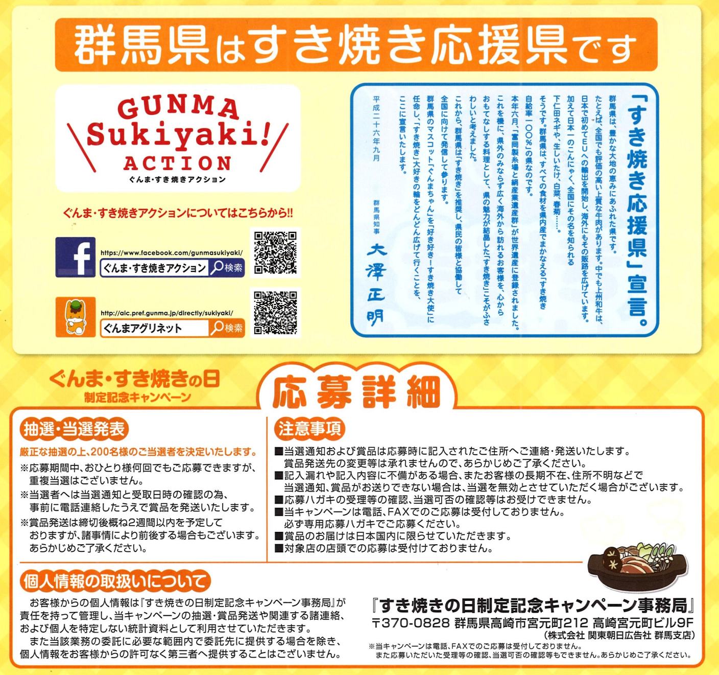 群馬県では、「すき焼き応援」を宣言し、
