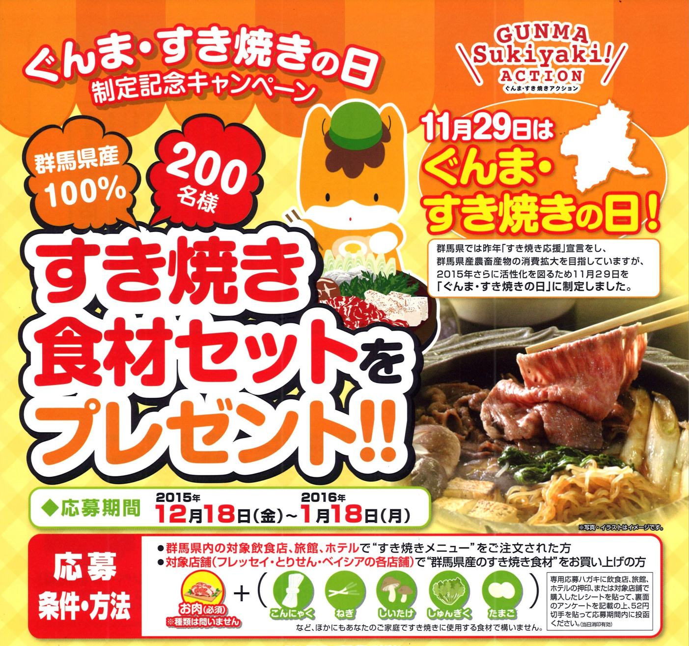 すき焼き食材プレゼントにご応募してください。