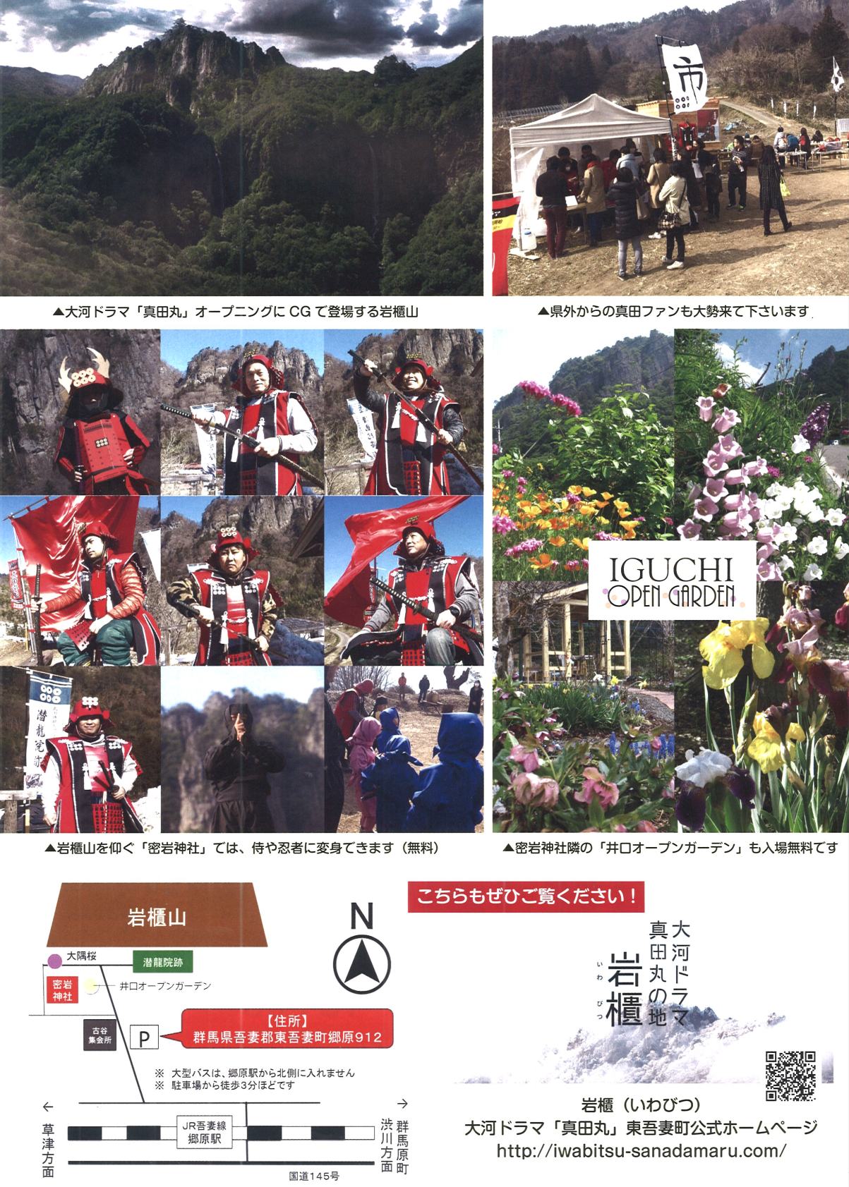 甲冑に身をつつみ、壮大な岩櫃山をバックに