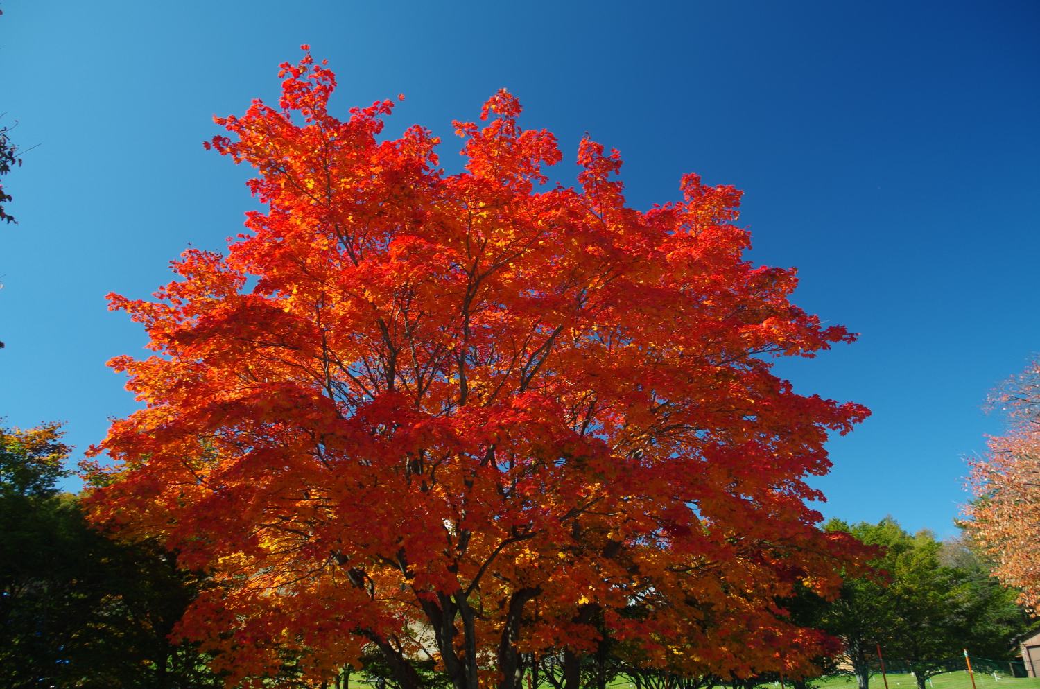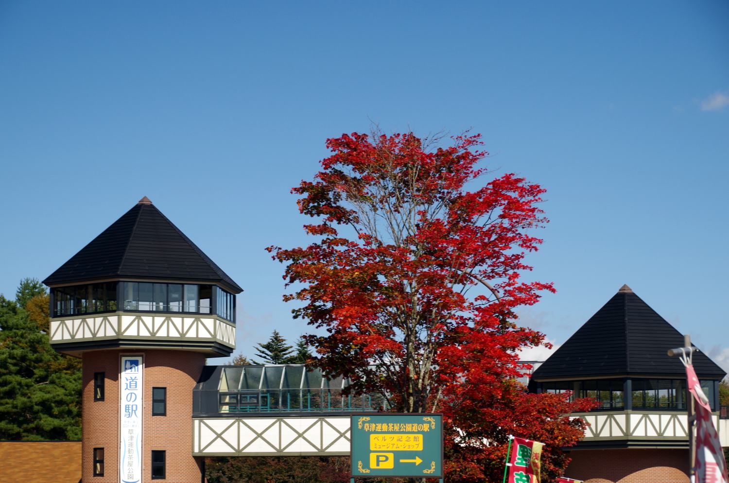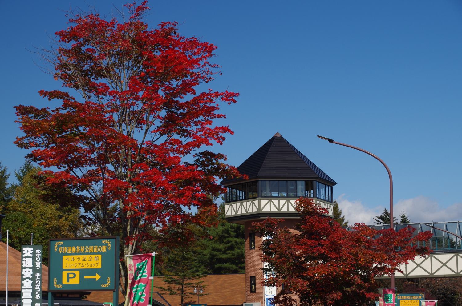 青い空に真っ赤な紅葉が、実に良く映えます。
