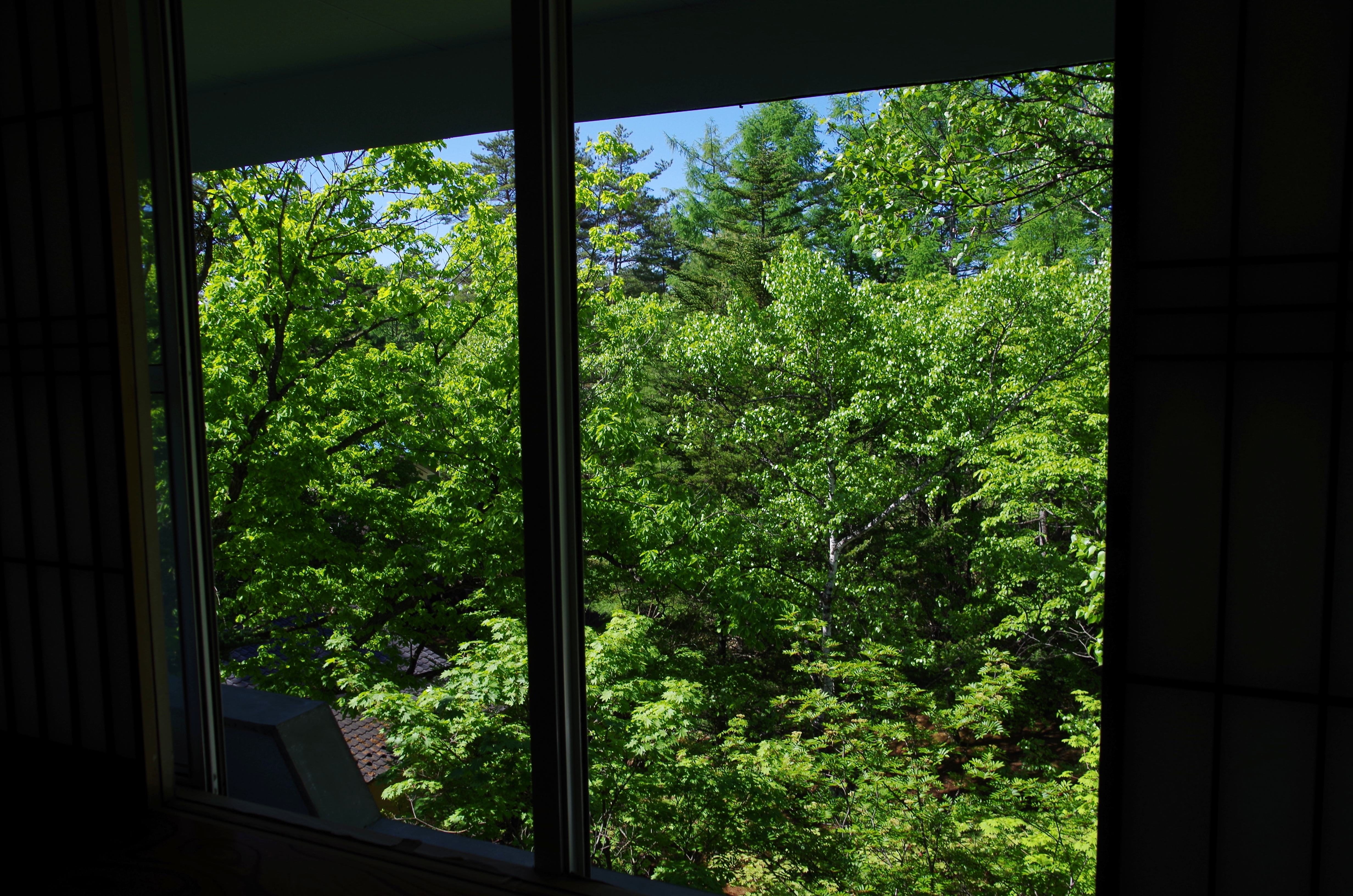 和室のお部屋から外を眺めると、