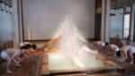 強酸性の草津温泉に漬けておくと、ペイントしたところが浮き上がり、