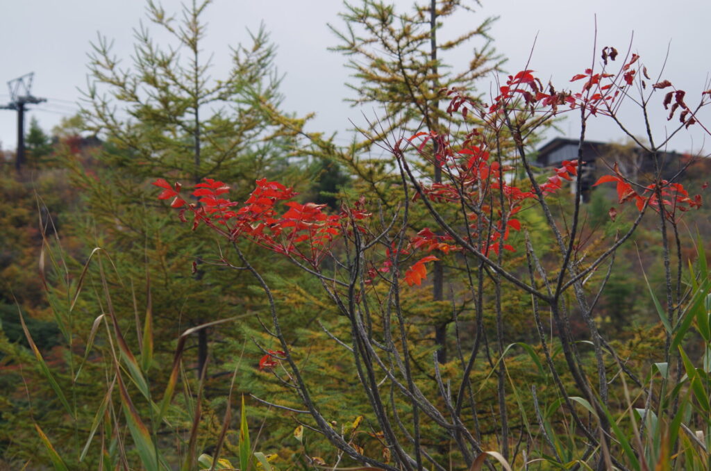 標高の高いこの一帯では、すでにヤマウルシの紅葉が終盤を迎えつつありますが、