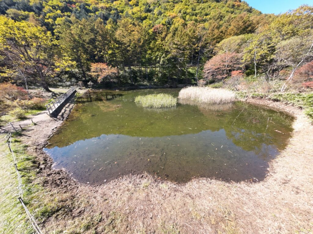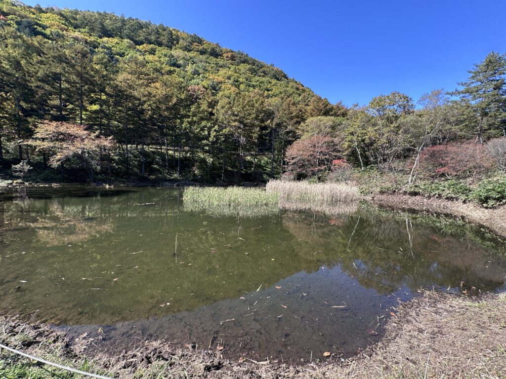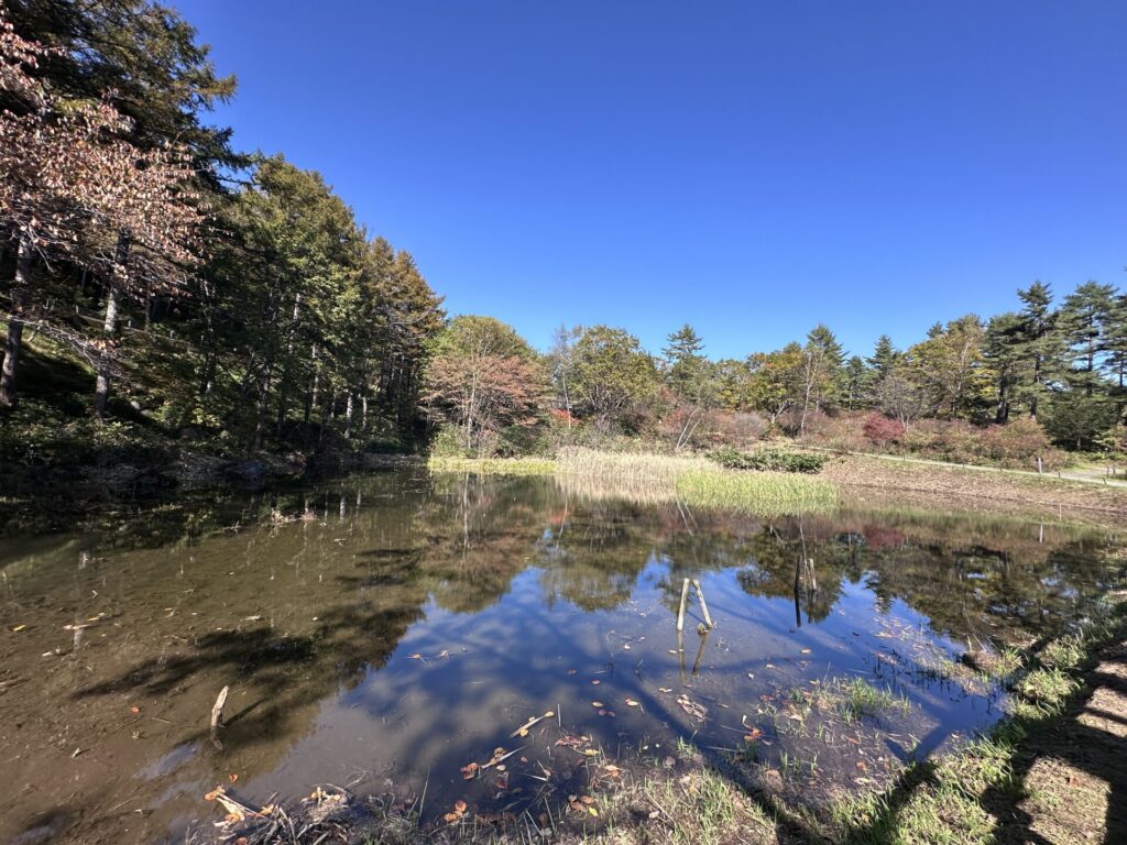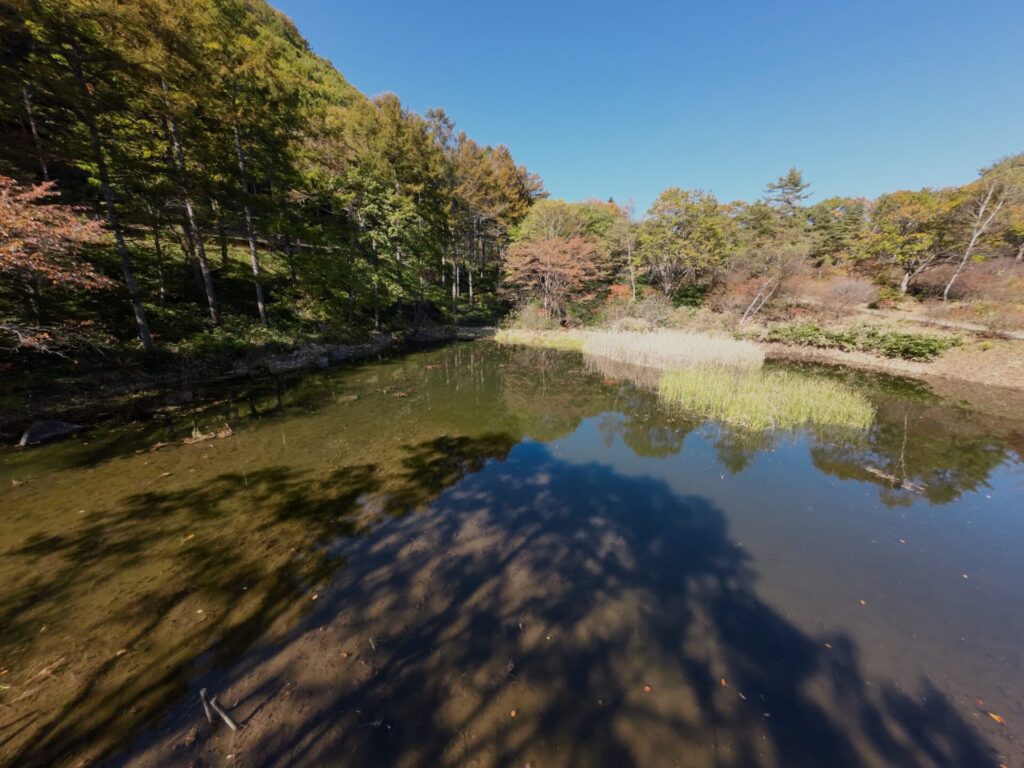 現在の池は、澄んだ水面に青空や紅葉が映りこみ、