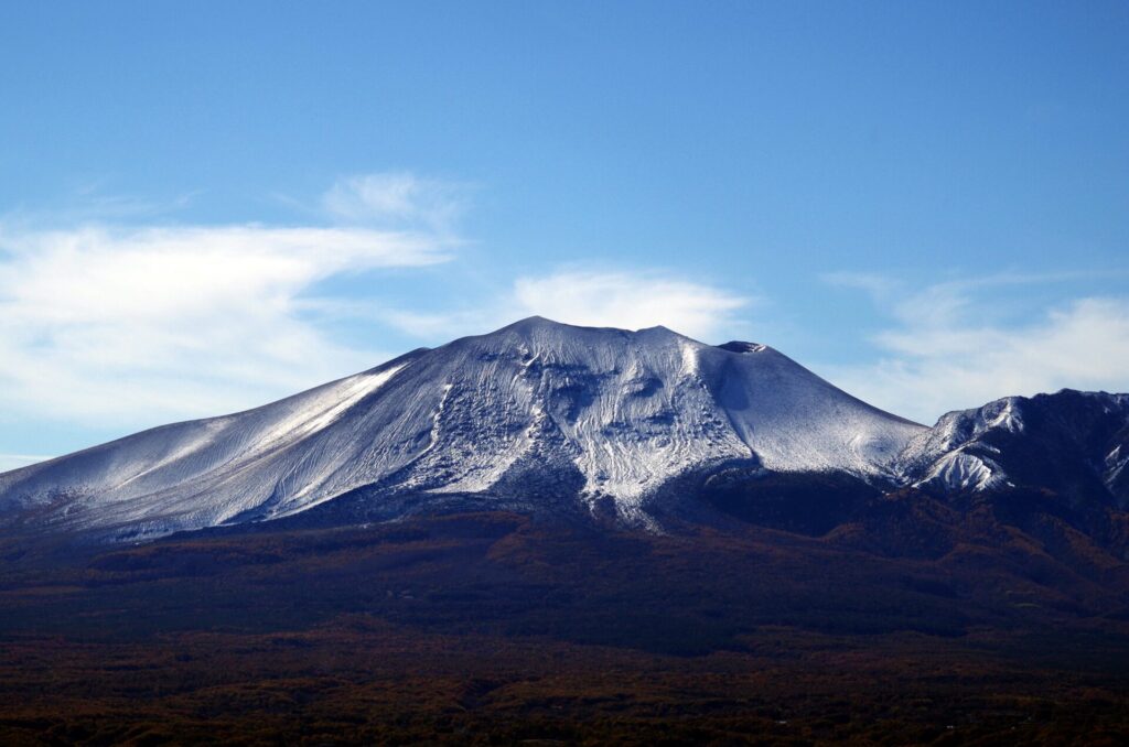 浅間山と白根山では、今年初めての冠雪となりました。