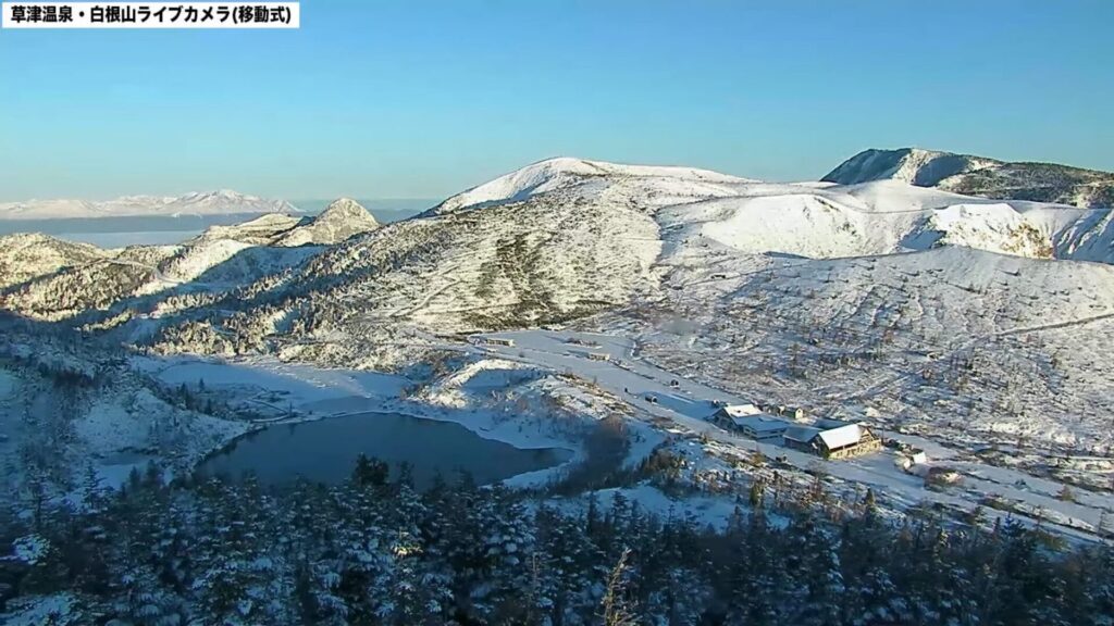 2025年11月3日、草津温泉では初雪が降り、