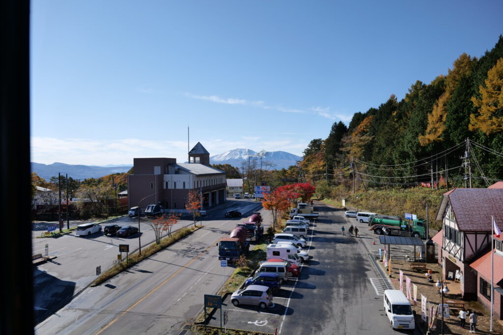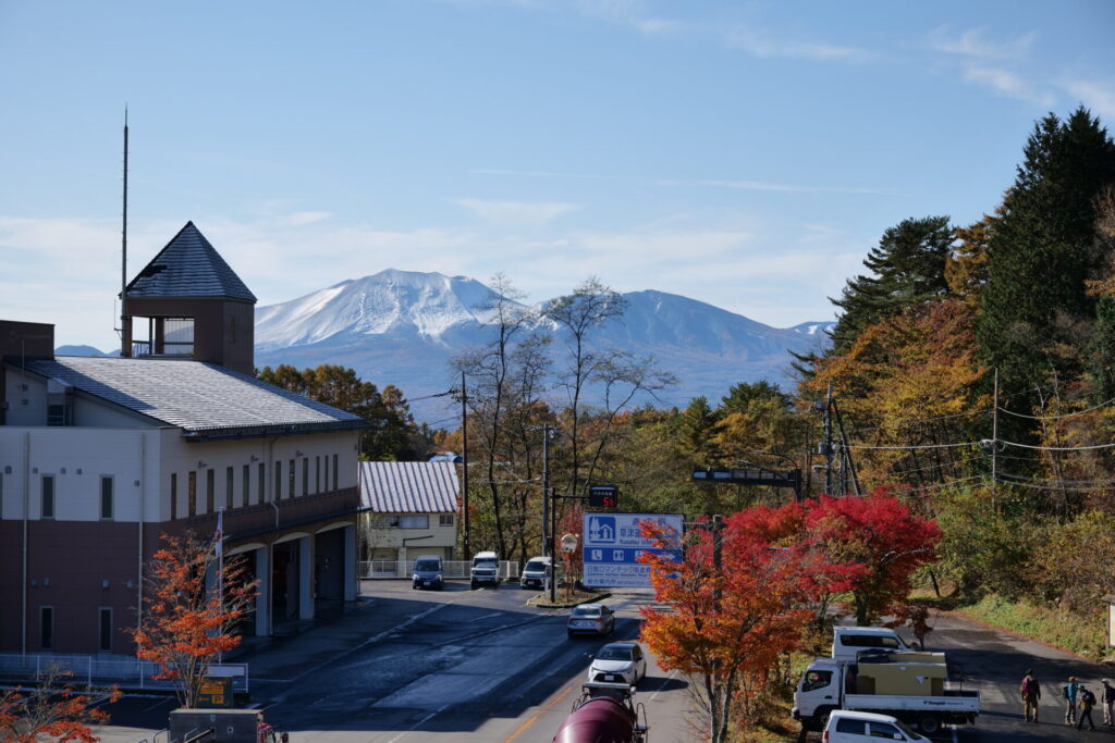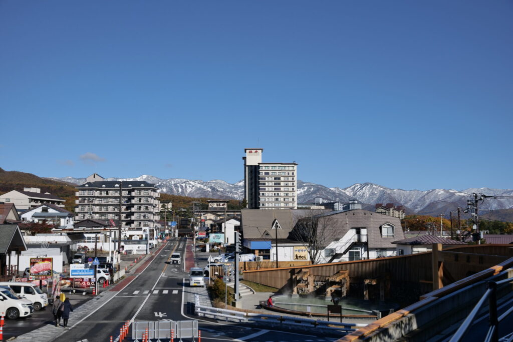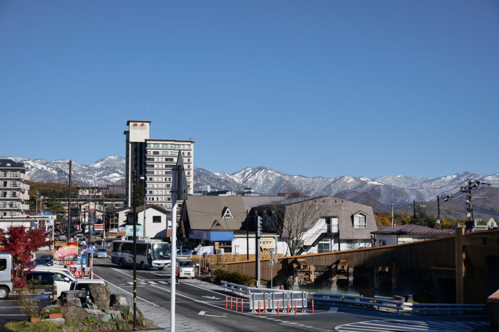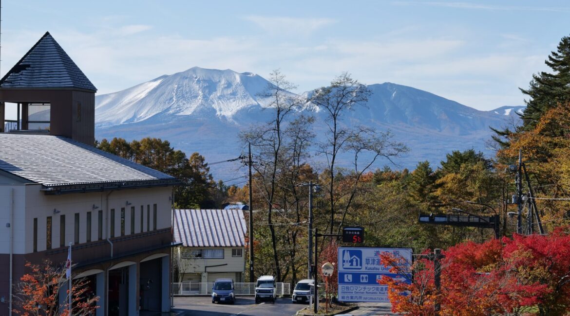 翌朝の11月4日には、草津の街から見上げた山々が真っ白に輝き、