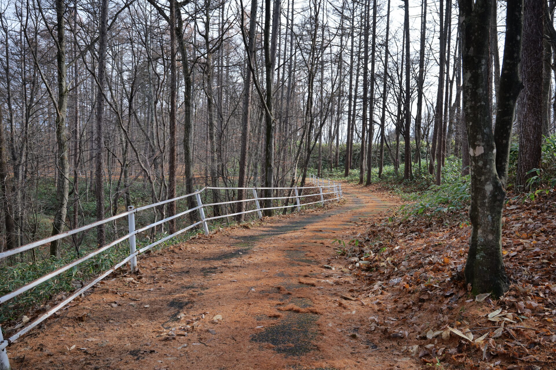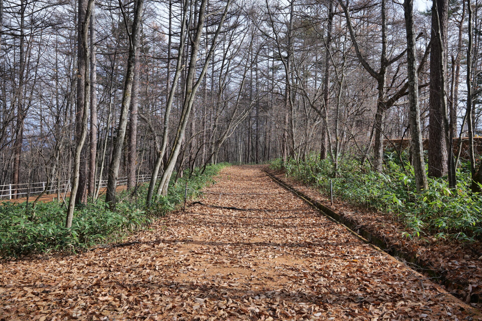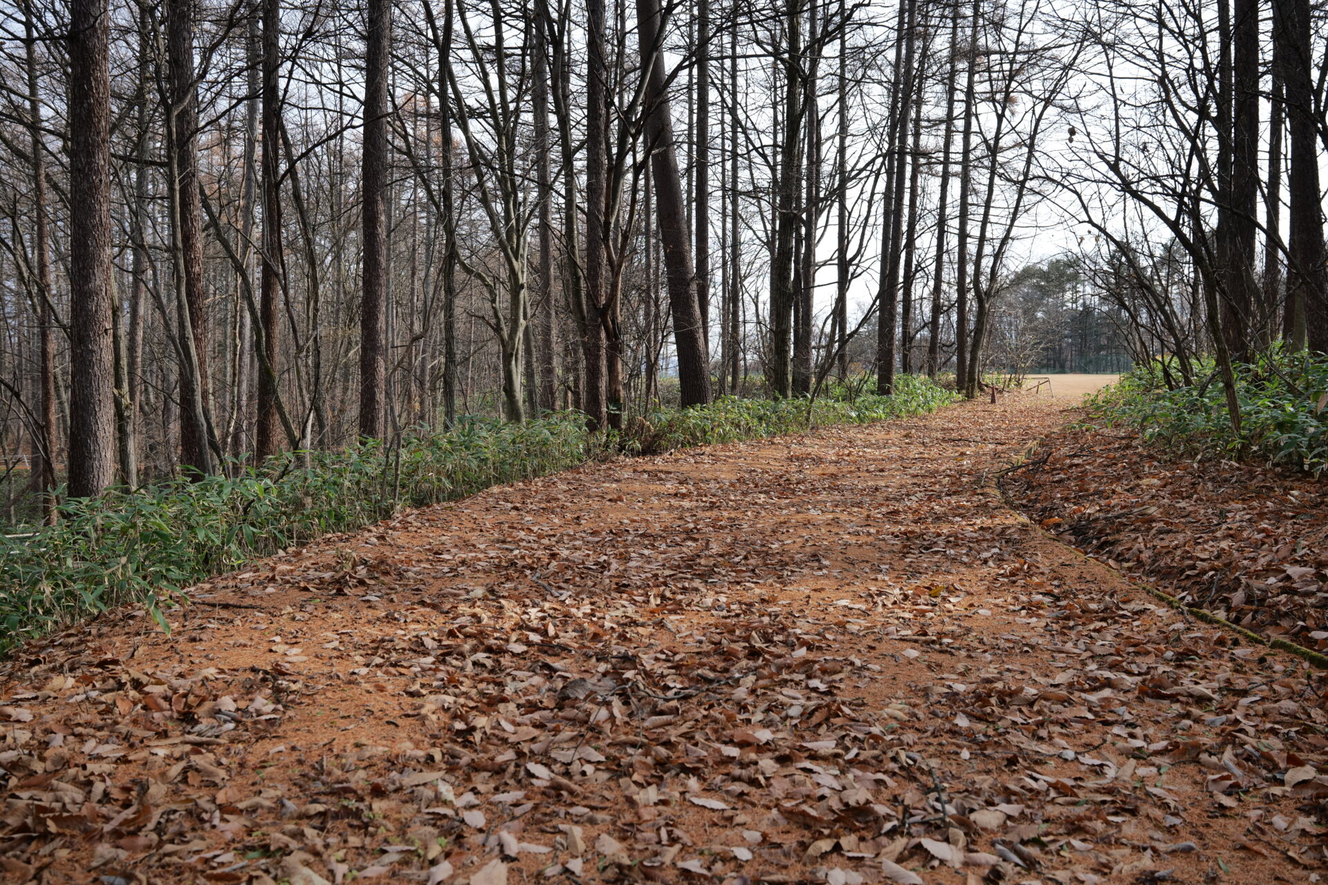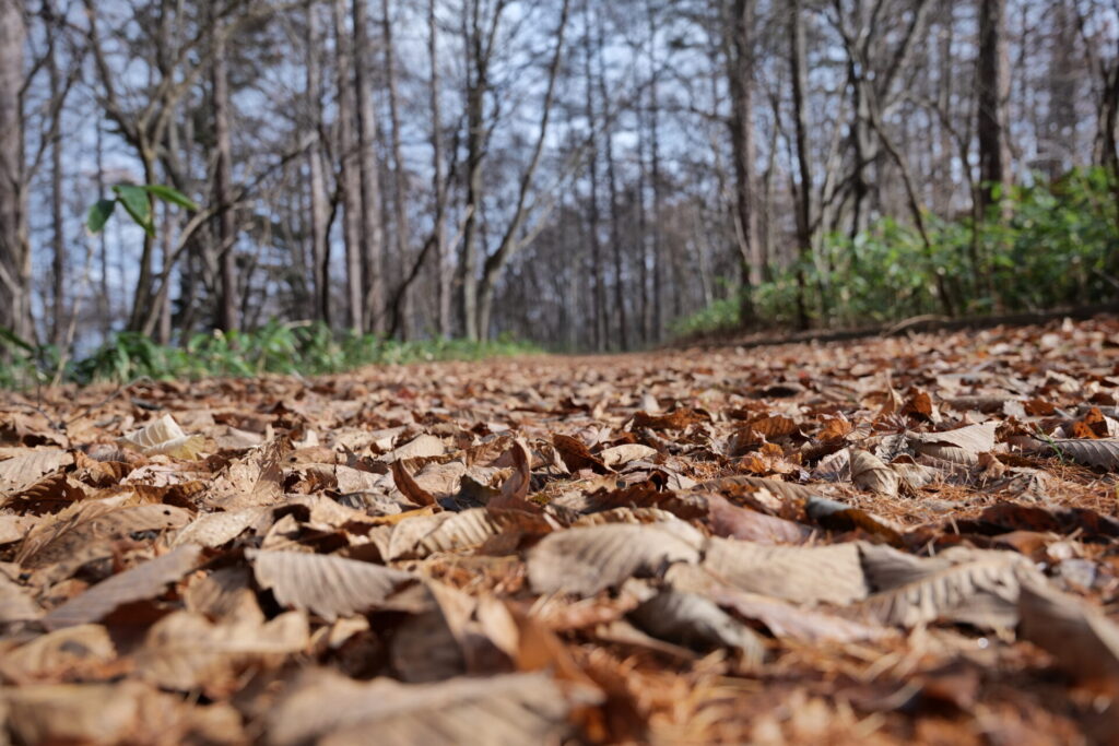 落ち葉がふかふかと敷きつめられた道を歩くと、
