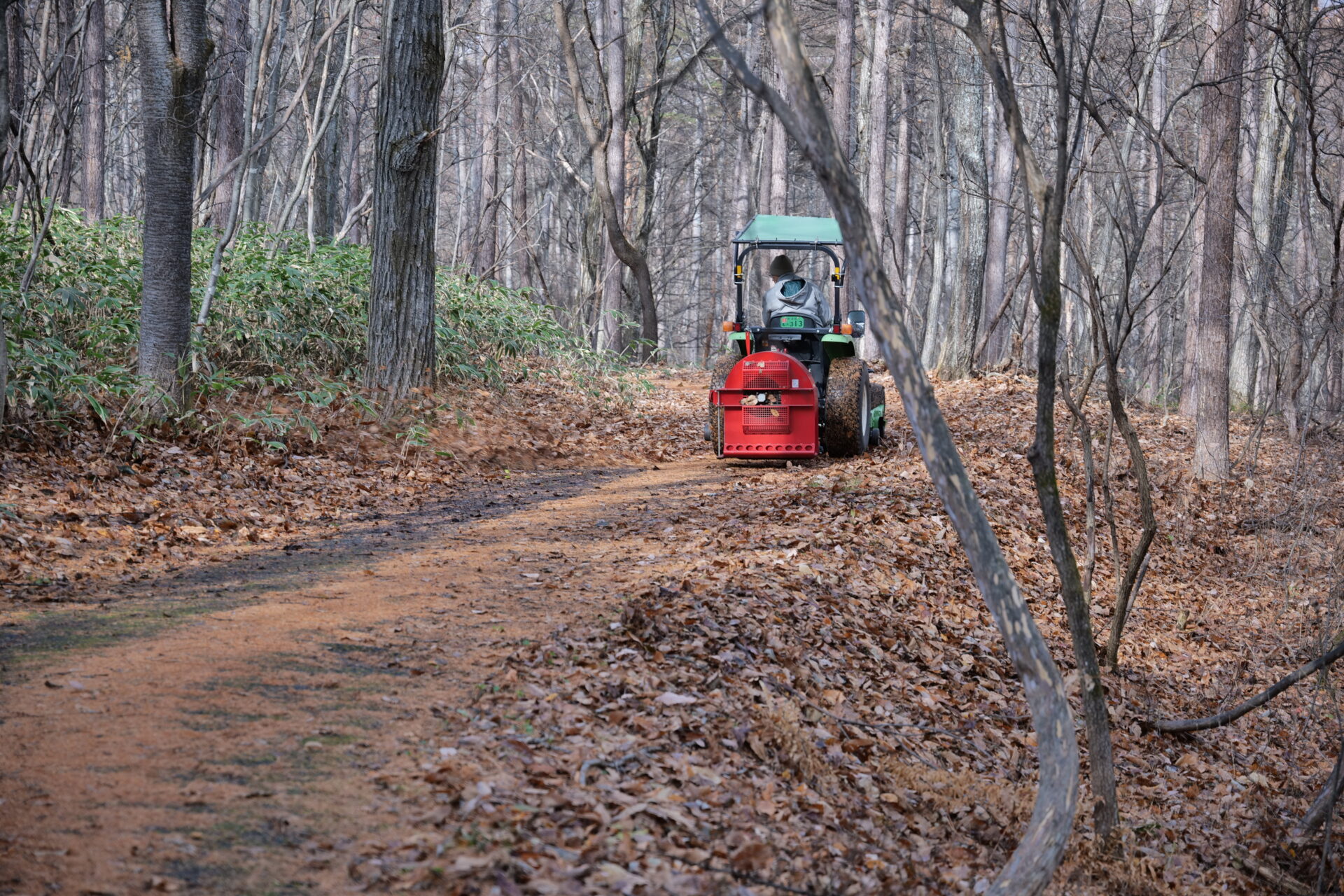 また、この日はちょうど清掃車が落ち葉を集めてくださっており、