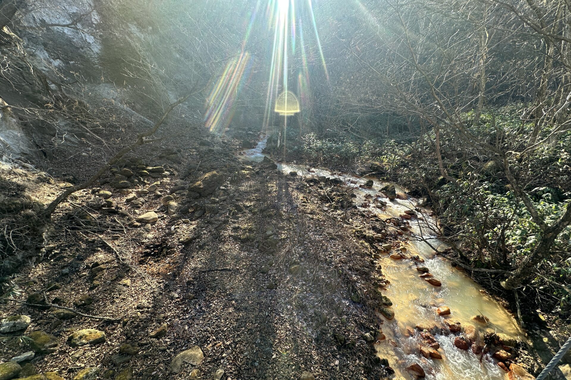 渓流の岩を照らす様子はどこか神秘的で、胸に迫る美しさでした。