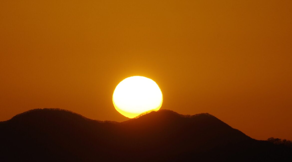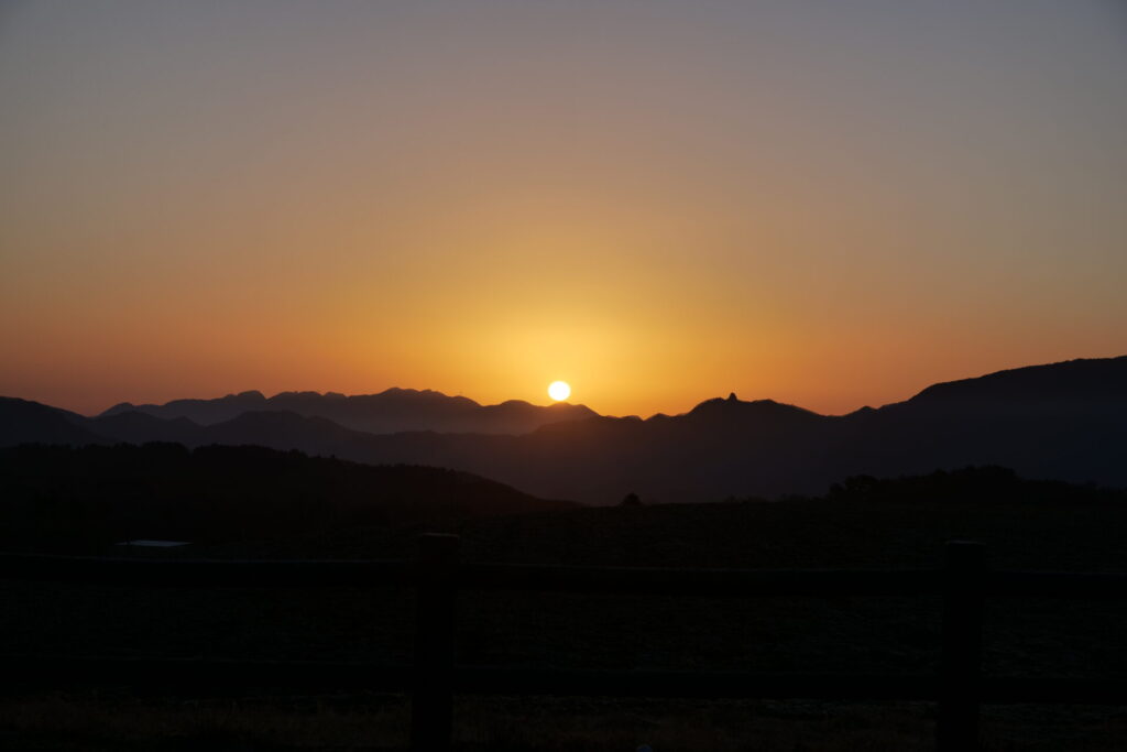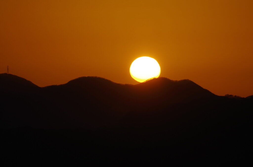 ふと東の空に目を向けると、山々の稜線から太陽がゆっくりと顔を出し、