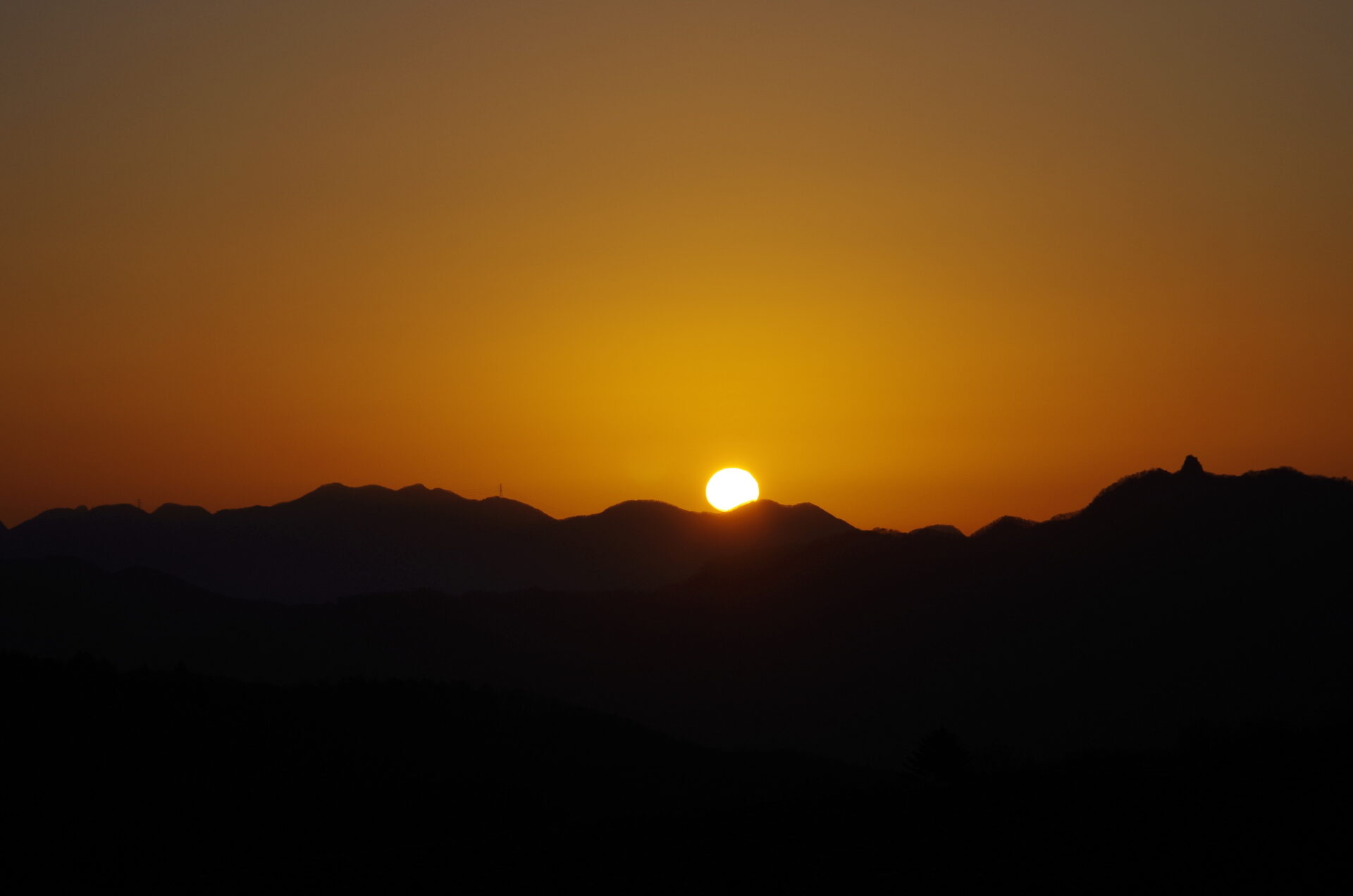 ふと東の空に目を向けると、山々の稜線から太陽がゆっくりと顔を出し、