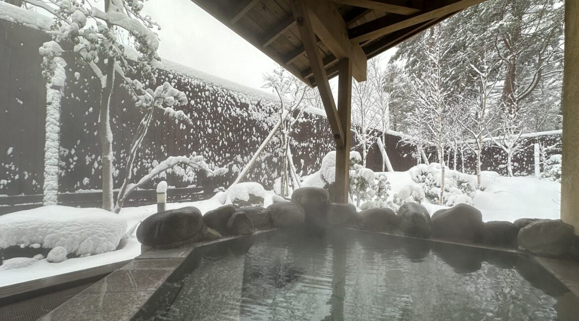 白銀の庭と湯けむりに包まれるひとときを、