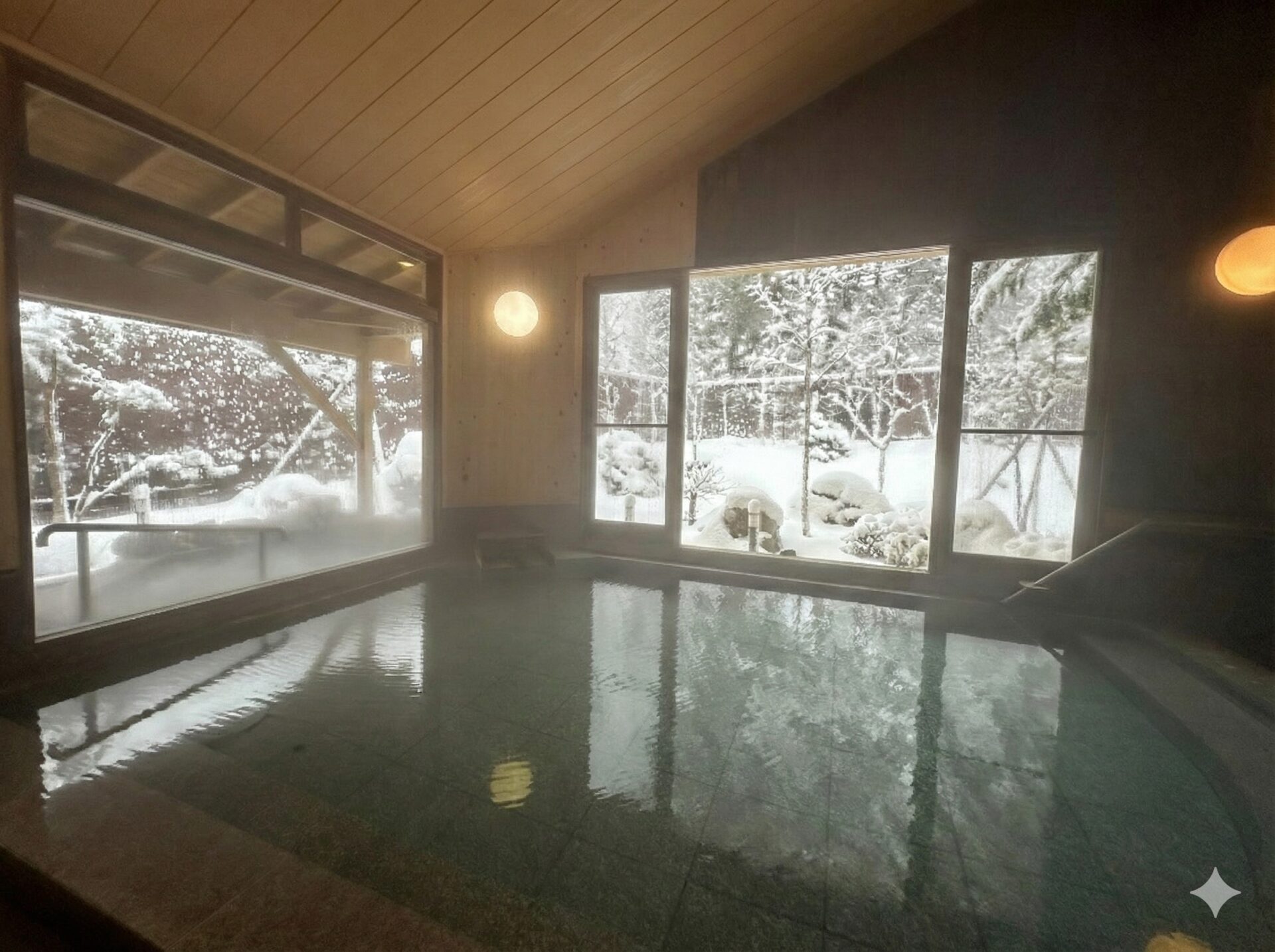 湯船に身を沈め、そっと手を伸ばせば、指先に触れるのはやわらかな雪。
