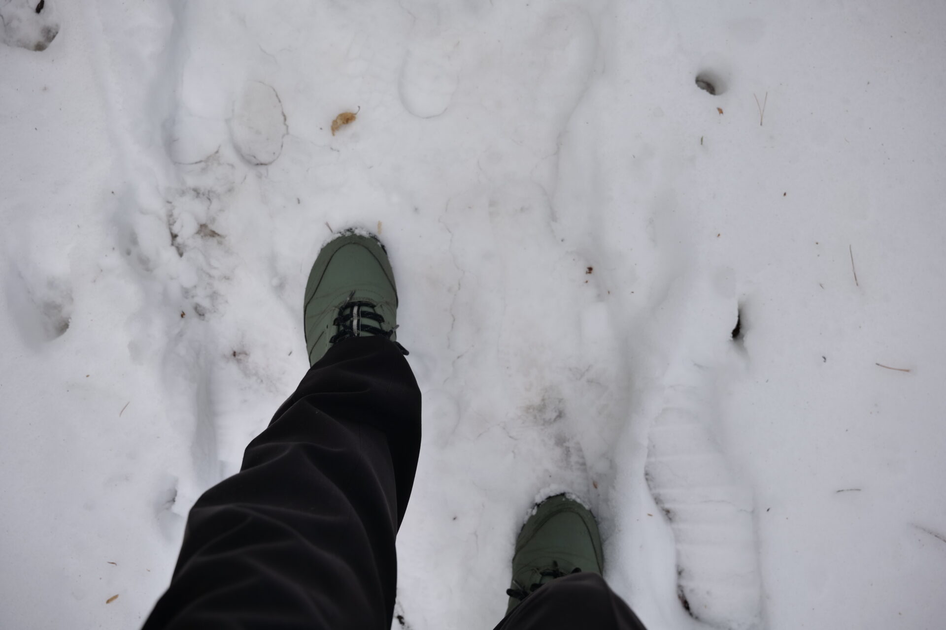雪に覆われた森の中では、ふと足元に目を向けると、
