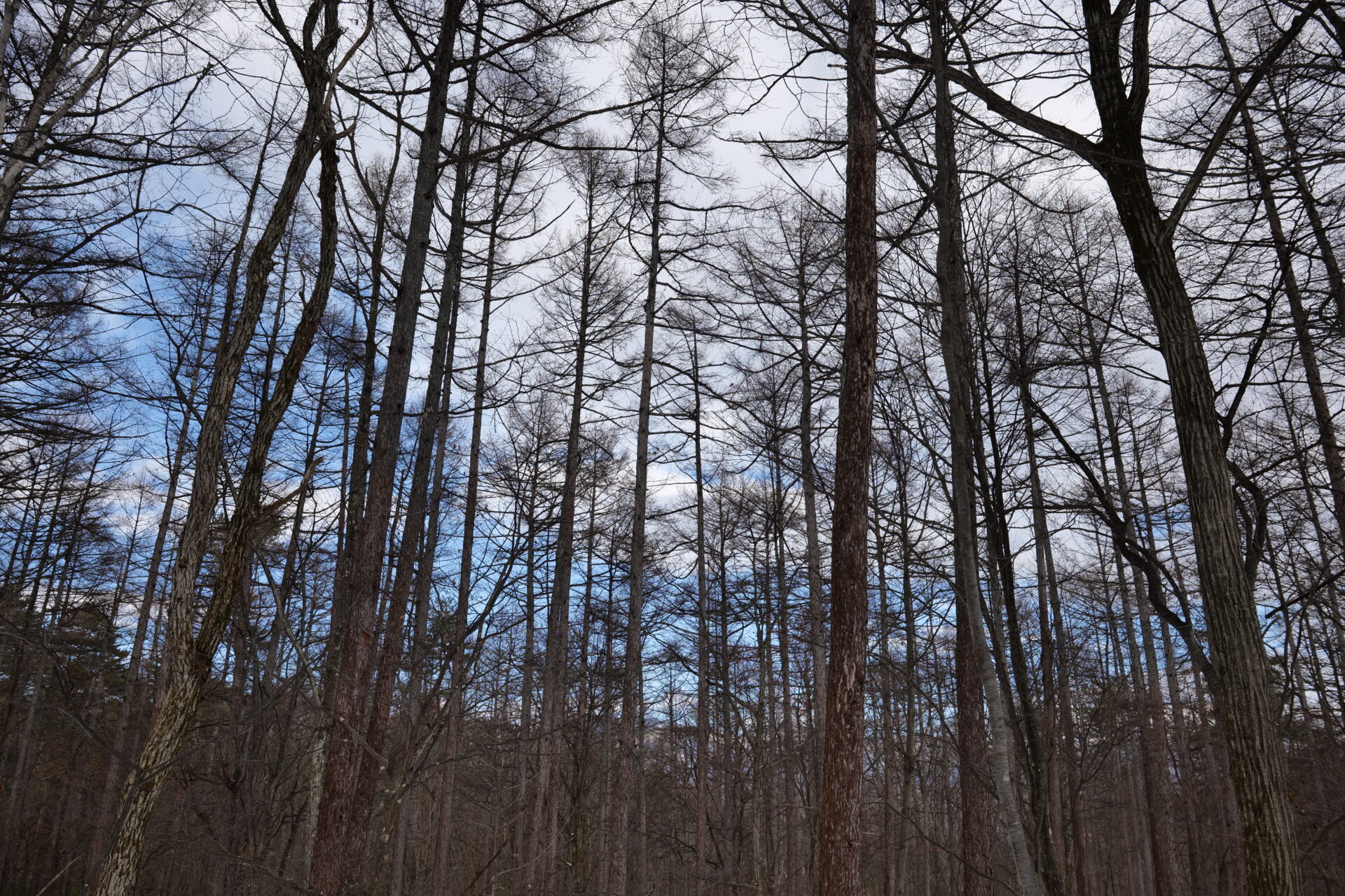 音の少ない冬の森は、心を落ち着かせ、深く呼吸したくなるような空間です。