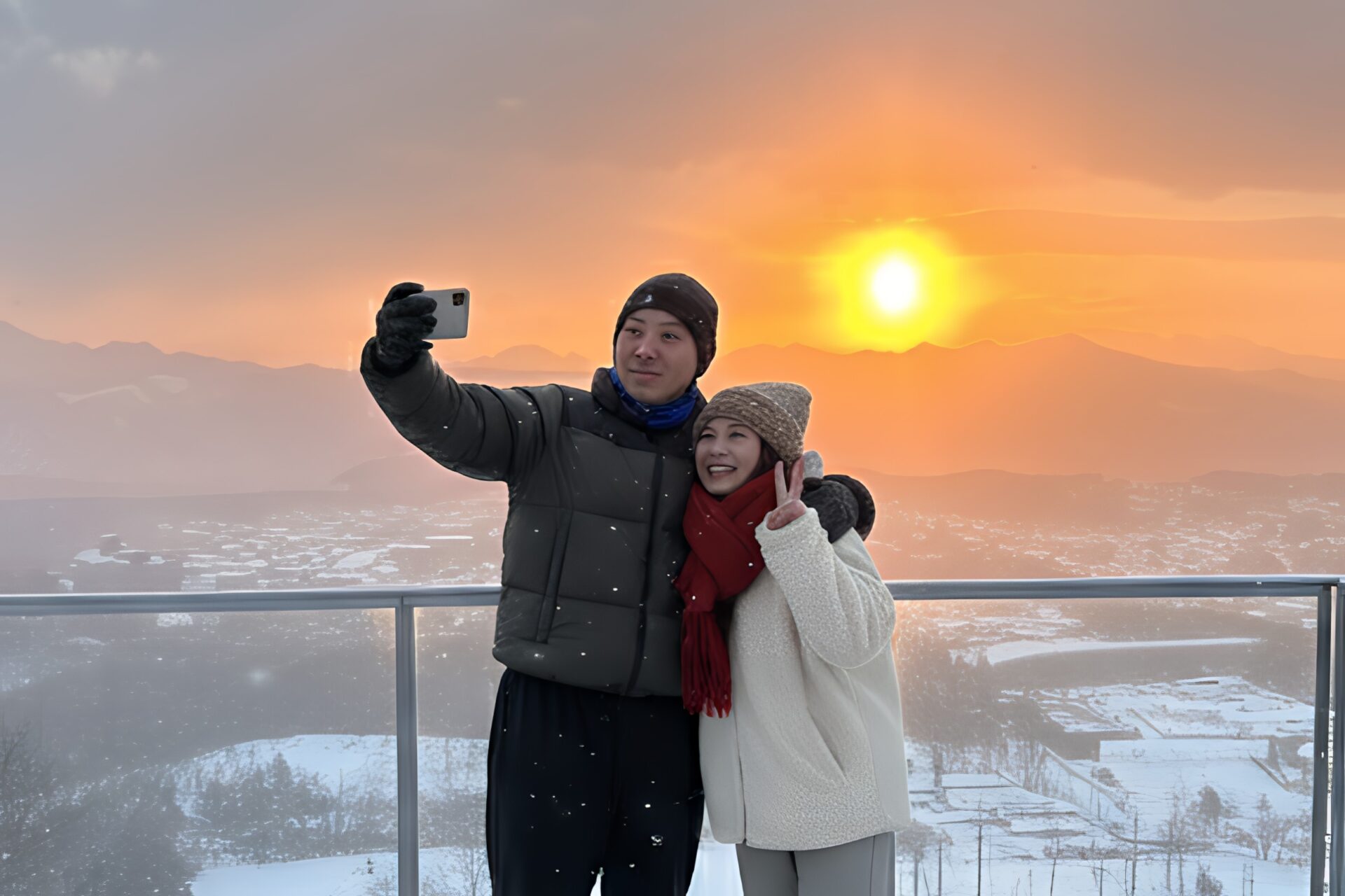 澄みわたる冬の空気に包まれながら、天狗山山頂から望む初日の出は、