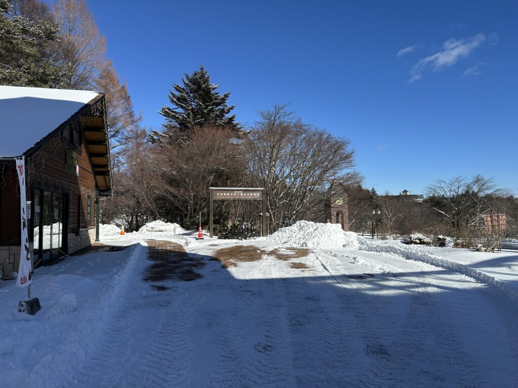 草津温泉は気温が低いため、降った雪は春まで残り続けます。