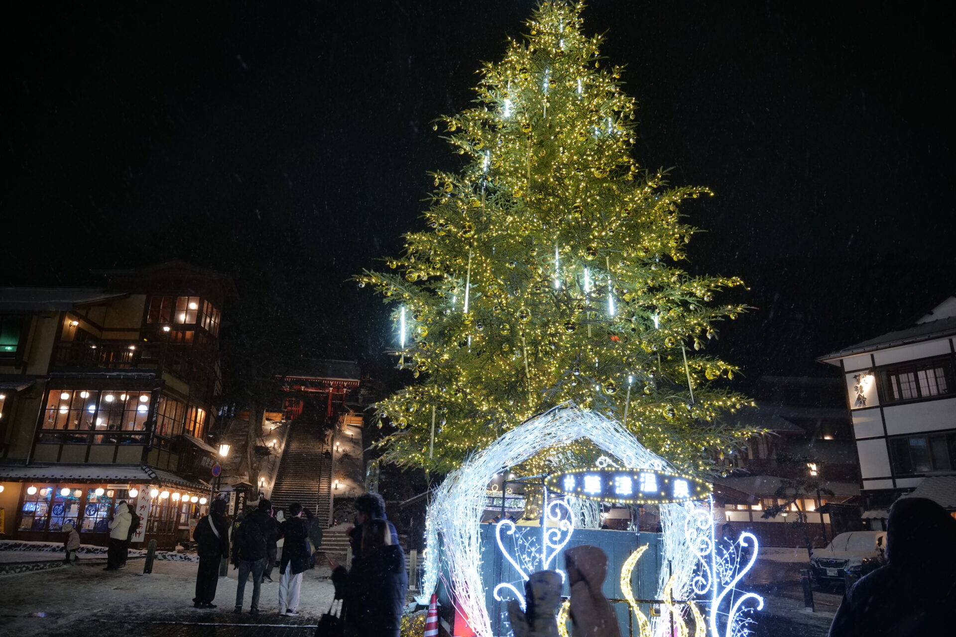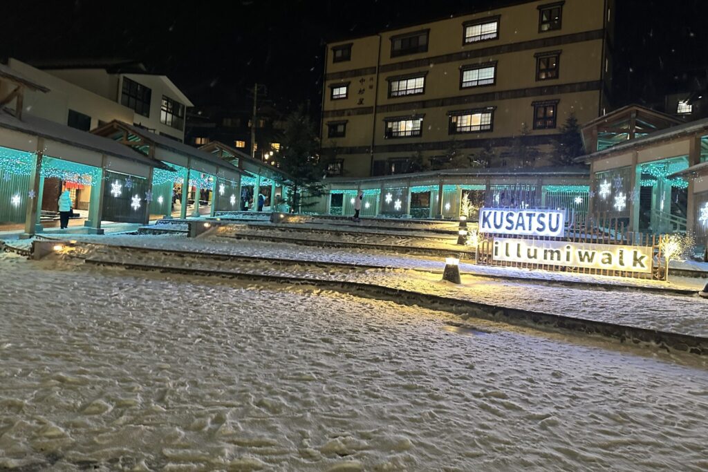 冬の期間中は、湯畑ツリーや湯路広場のイルミネーションウォークも好評で、