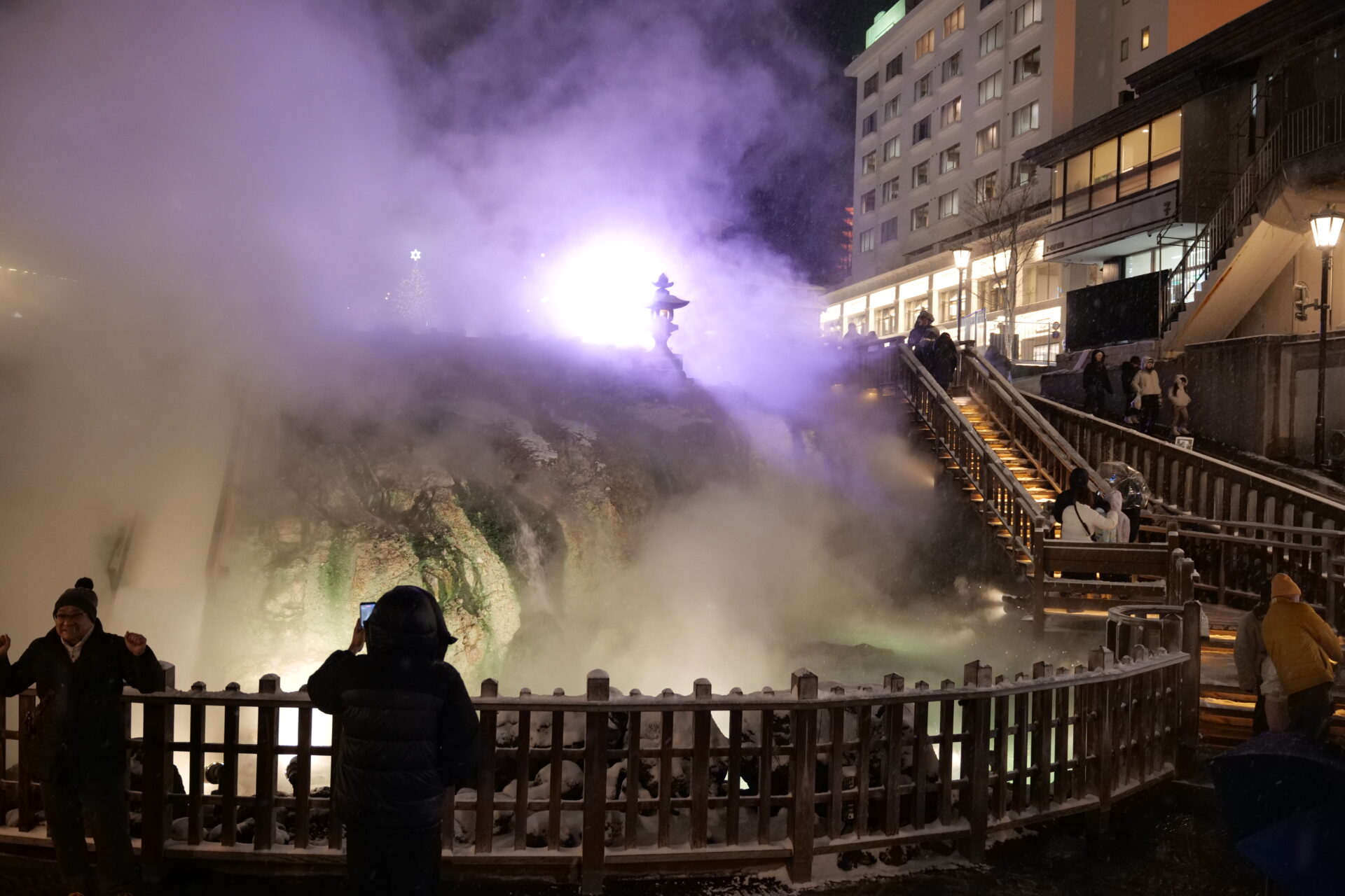 夜の湯畑散策をさらに華やかに彩ってくれます。