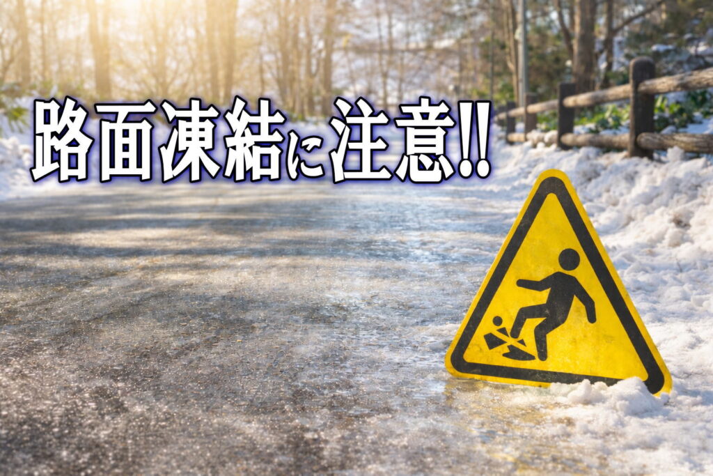 スタッドレスタイヤでも滑ってしまう場合がございます。