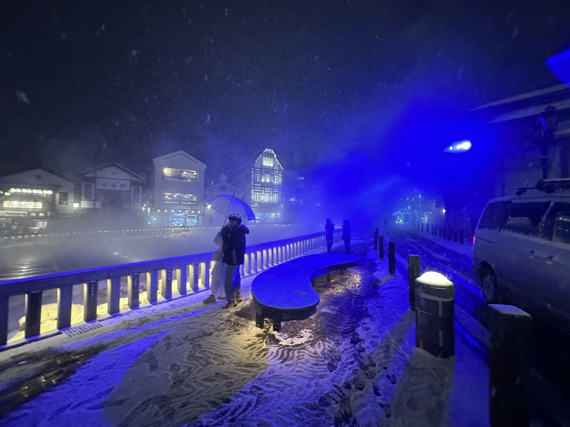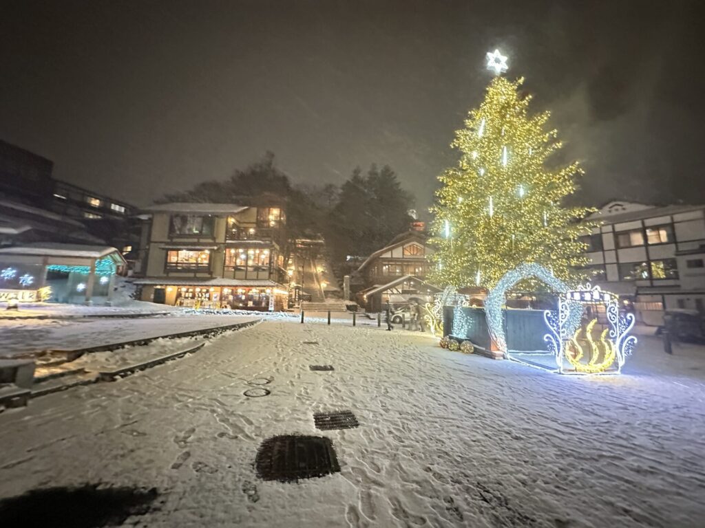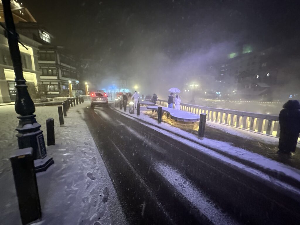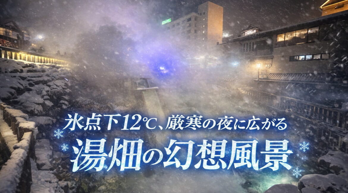 ❄️ 氷点下12℃の夜に包まれた湯畑