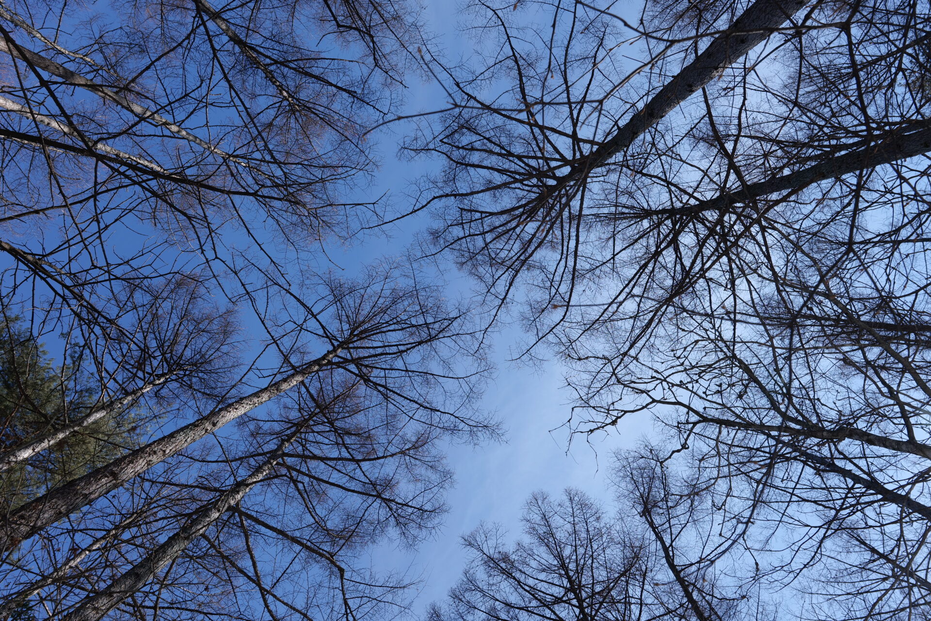 見上げれば、枝だけになった木々が青空へと伸び、冬ならではの開放感も味わえます。