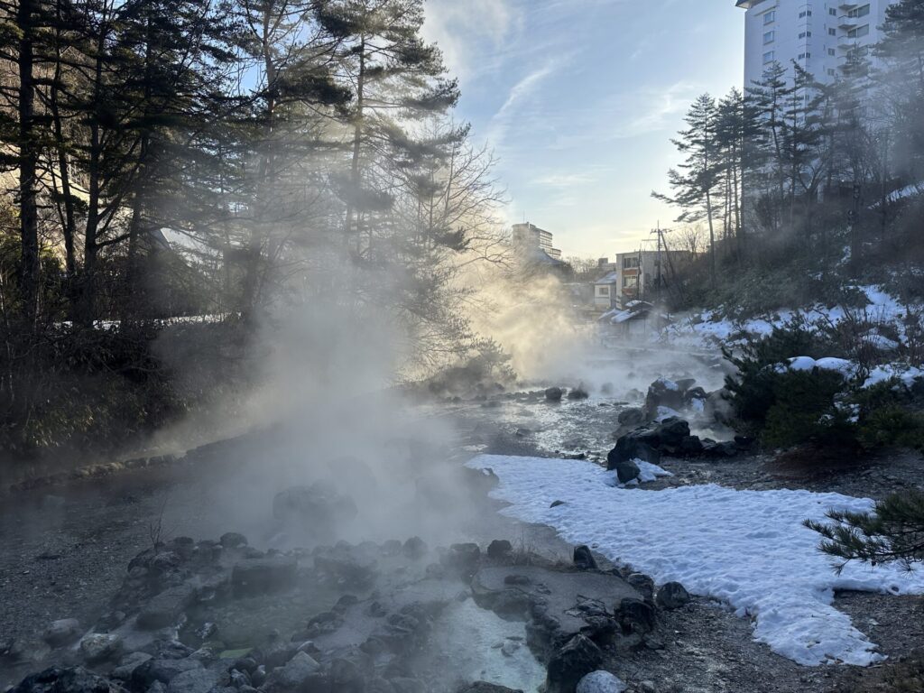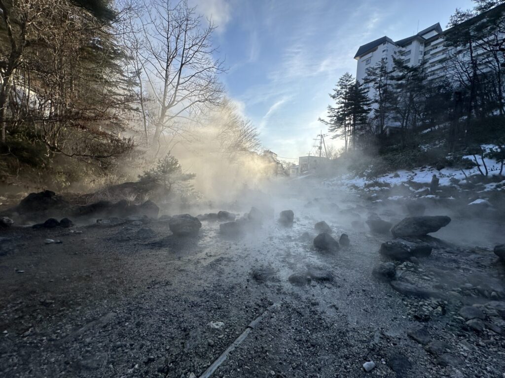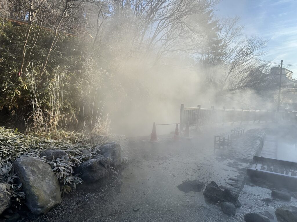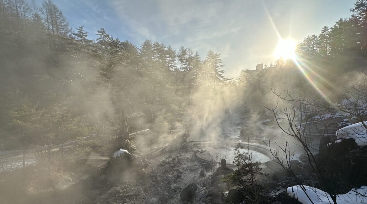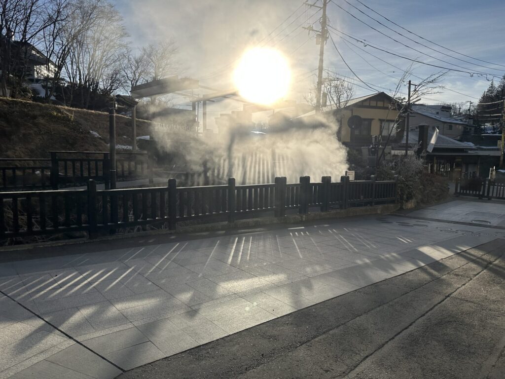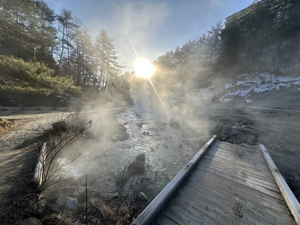 その冷え込みがあるからこそ、湯けむりは力強く立ちのぼります。