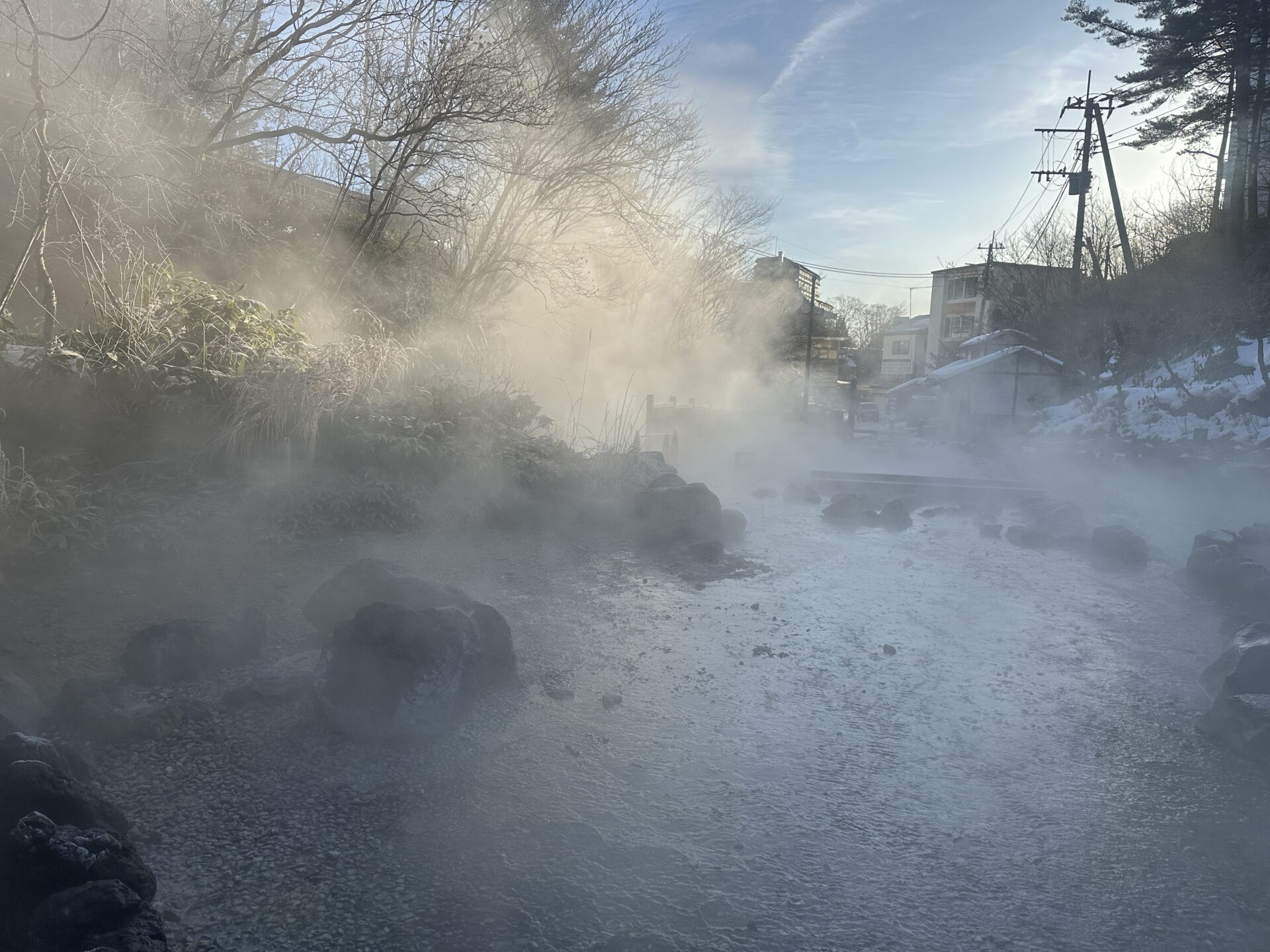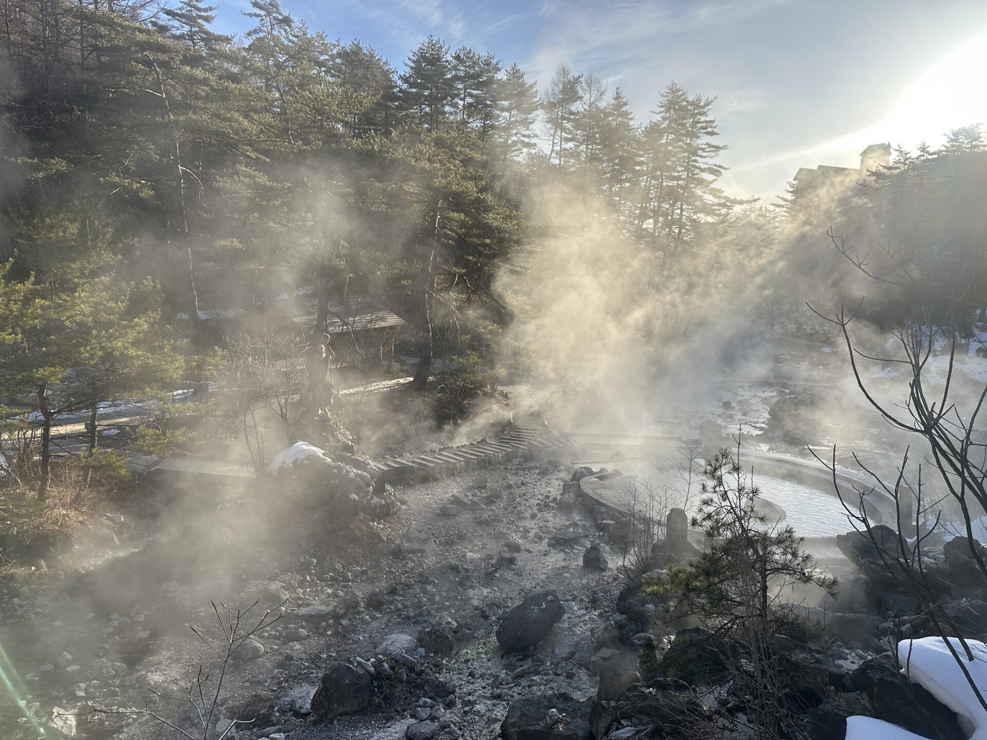 その冷え込みがあるからこそ、湯けむりは力強く立ちのぼります。