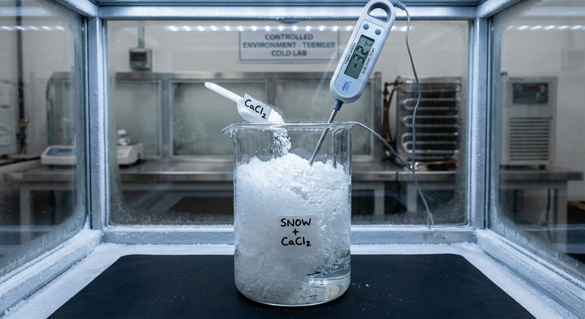 「ビーカーに雪を入れて、塩化カルシウムを混入した結果、