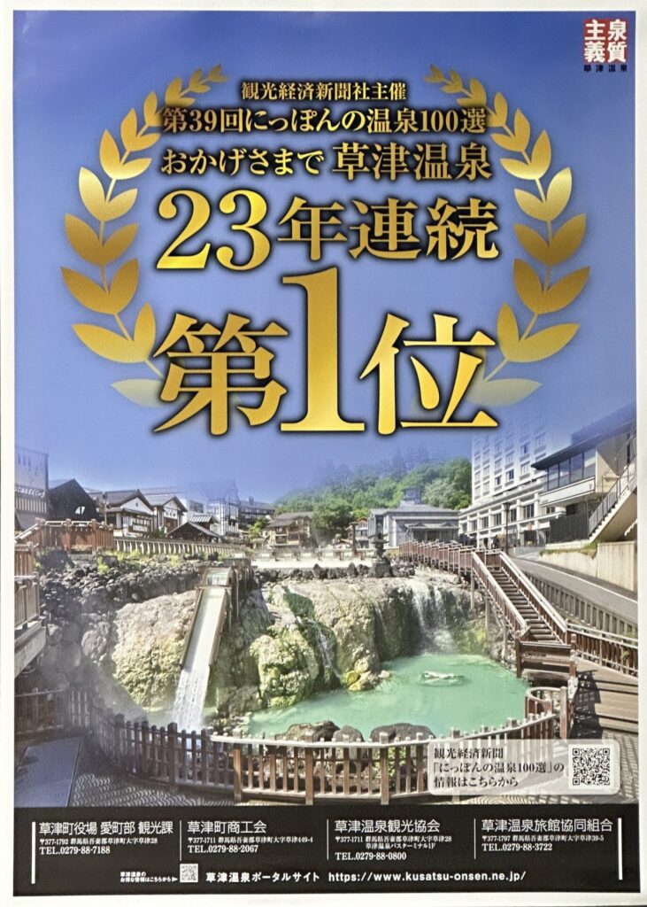 草津温泉が23年連続第1位に輝きました。