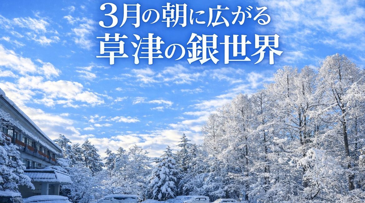 3月4日(水)、雪が降った翌朝の草津温泉は、息をのむような銀世界に包まれました。