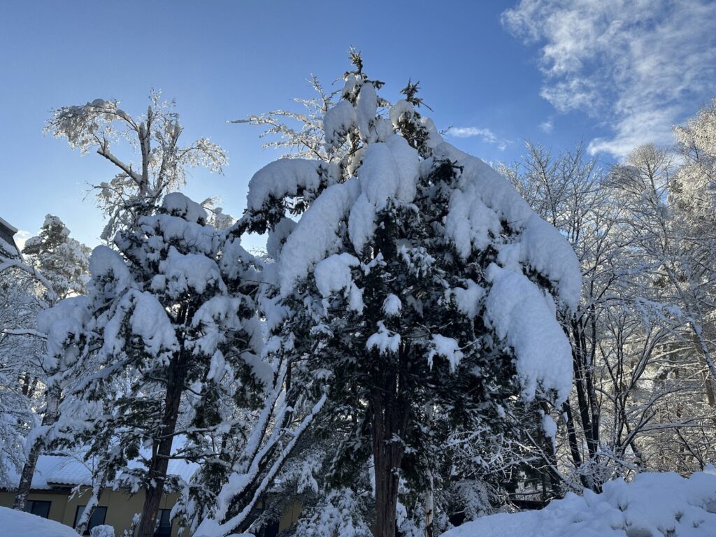湿った雪ならではの重みが枝に残り、ふわりと丸みを帯びた姿がとても印象的でした。