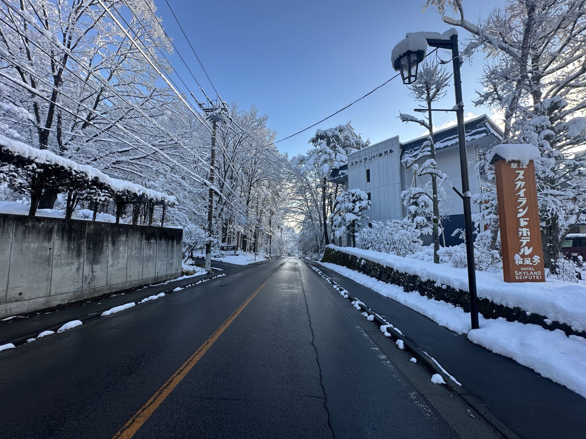真っ白な雪と青空との鮮やかな対比が、草津ならではの美しさを一層引き立てております。