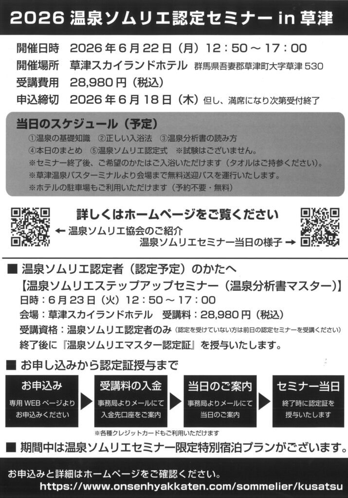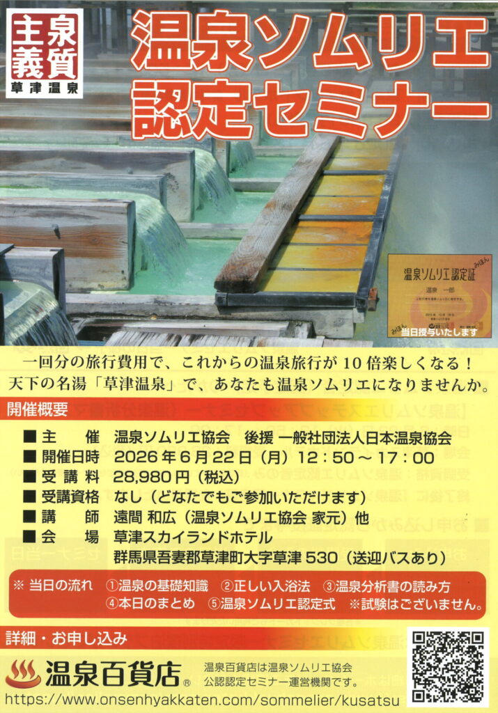 「2026 温泉ソムリエ認定セミナー in 草津」の