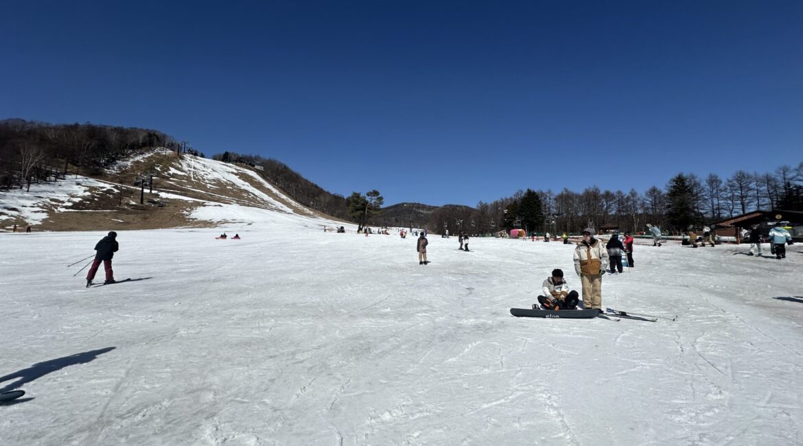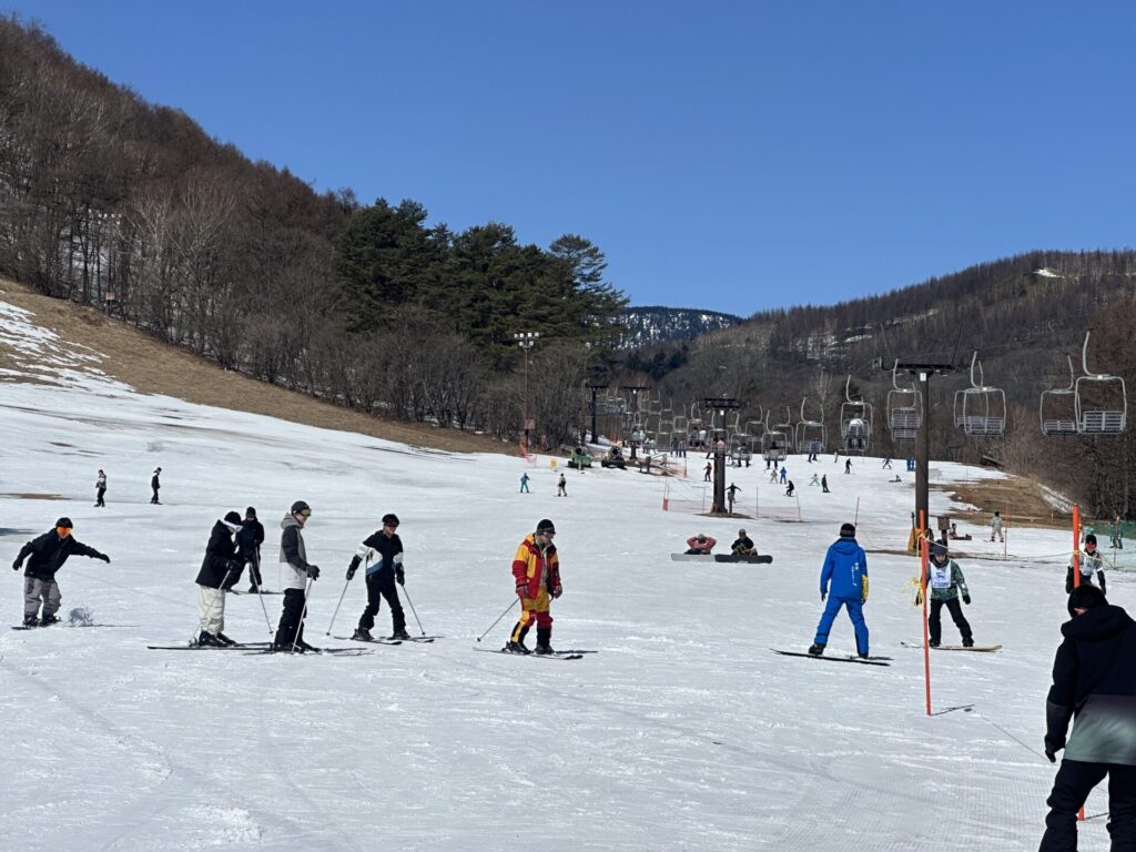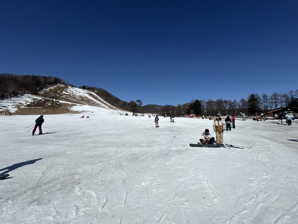 青く澄みわたる空の下、ゲレンデには春の気配も感じられましたが、