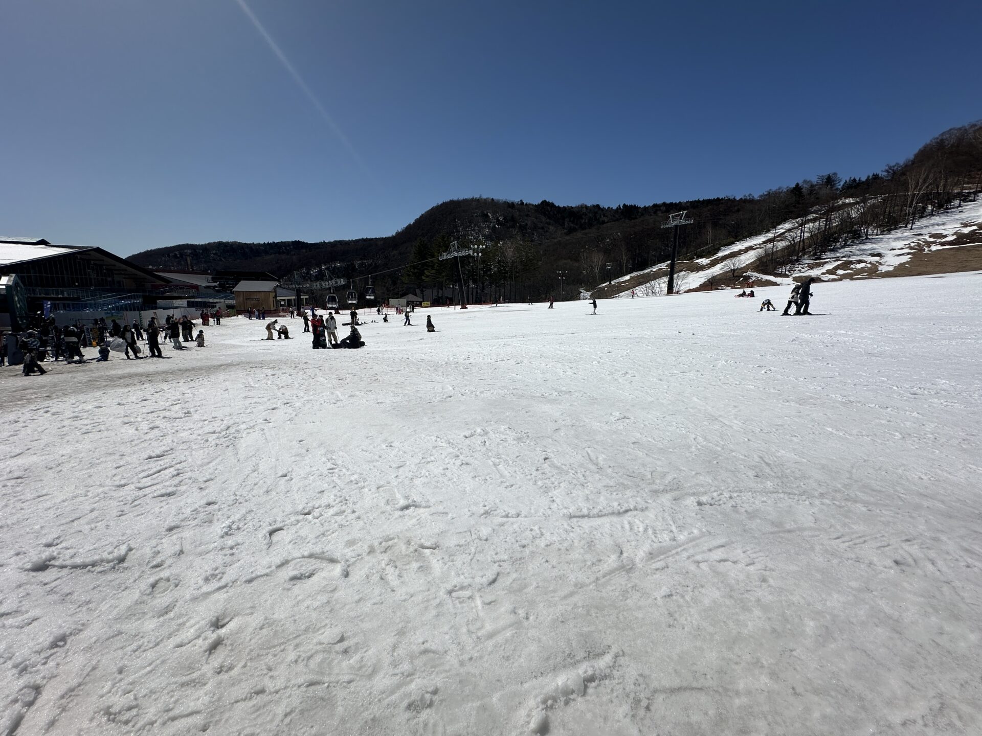 青く澄みわたる空の下、ゲレンデには春の気配も感じられましたが、