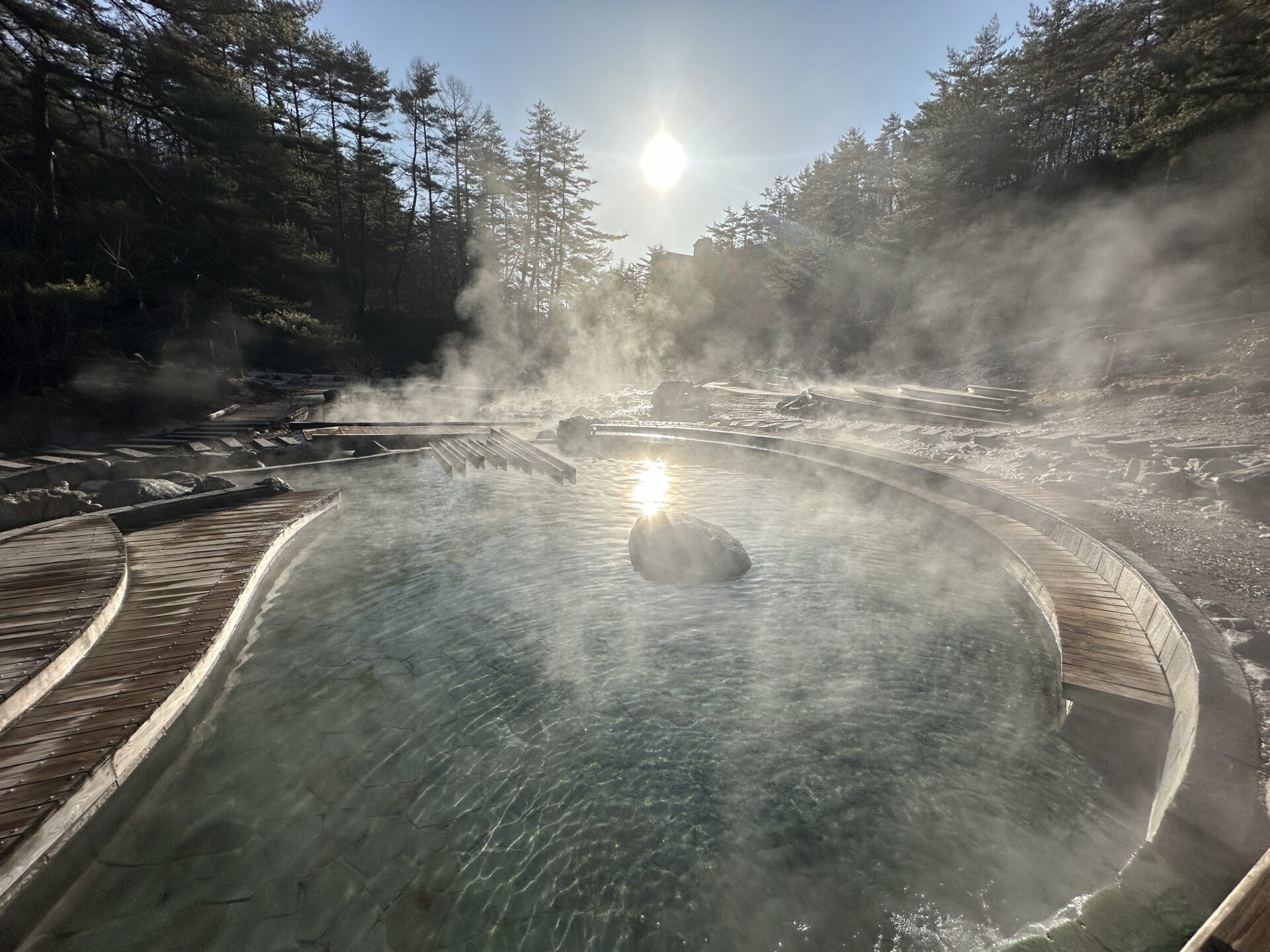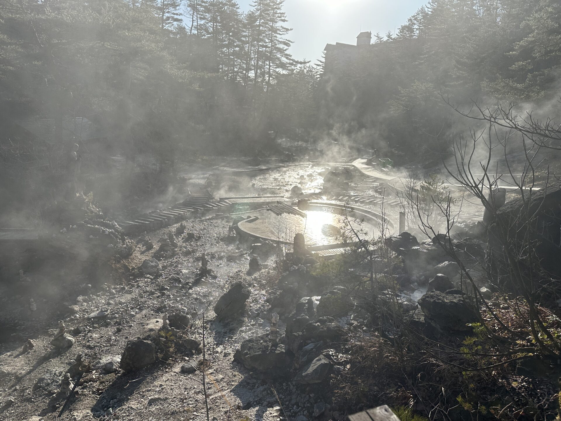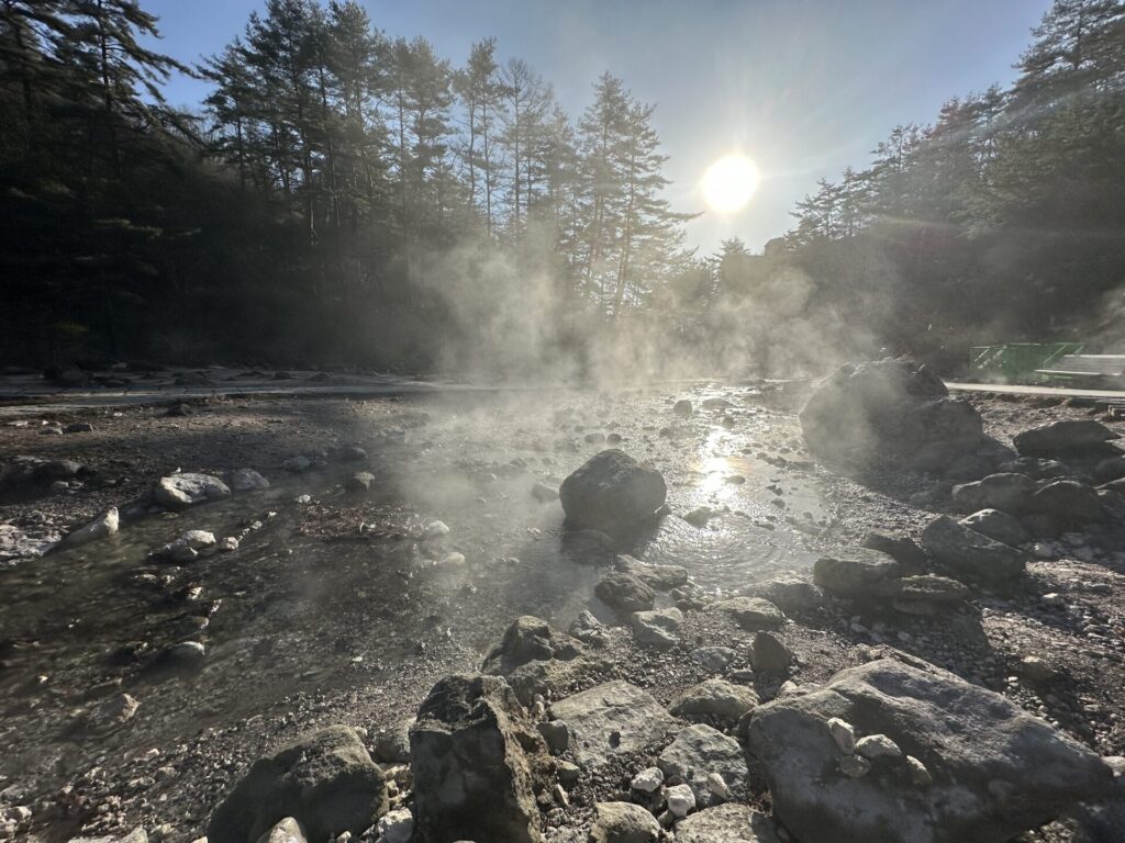 寒い朝だからこそ、温泉のぬくもりと光の美しさがより