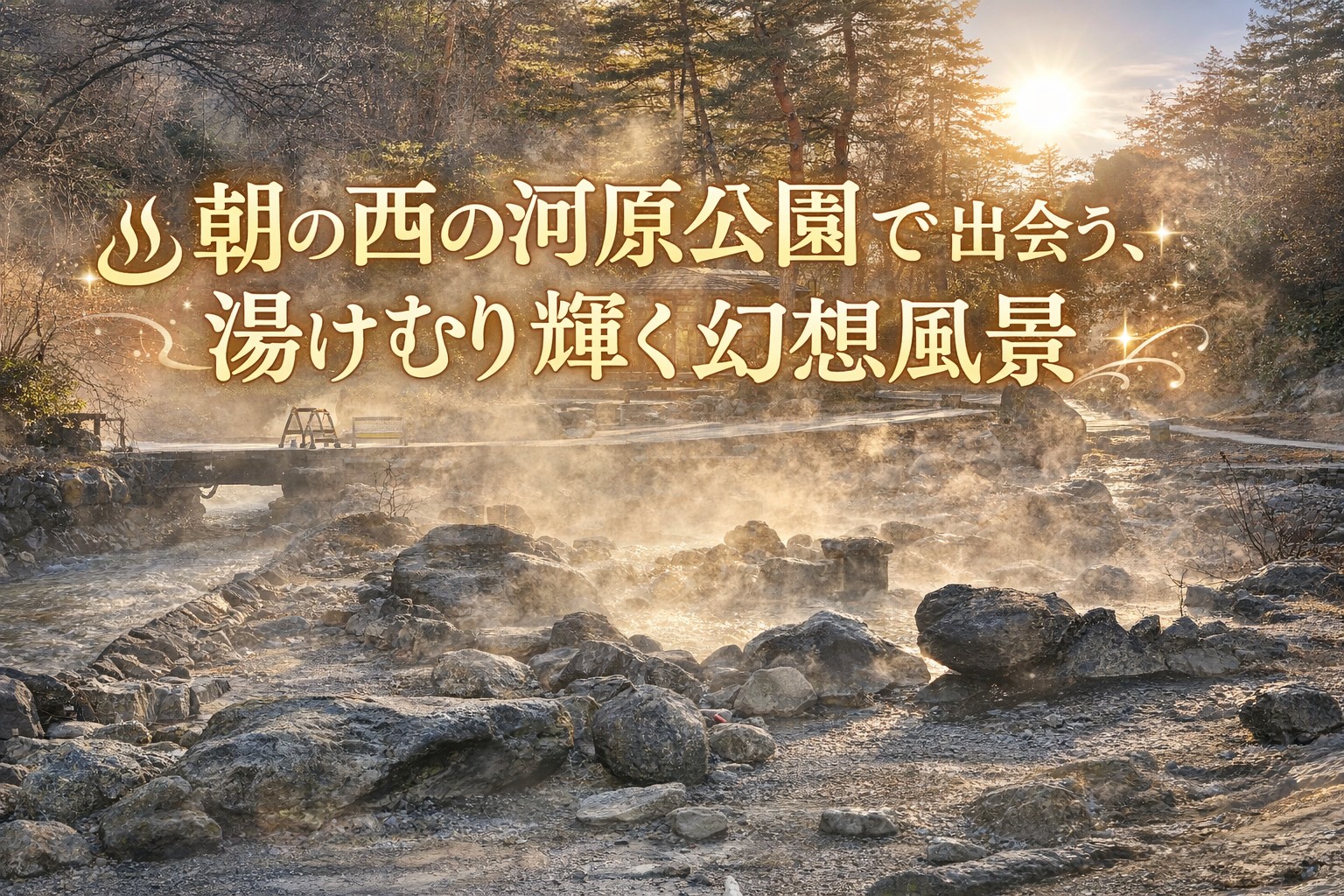 ♨ 湯けむりと朝日が織りなす幻想風景